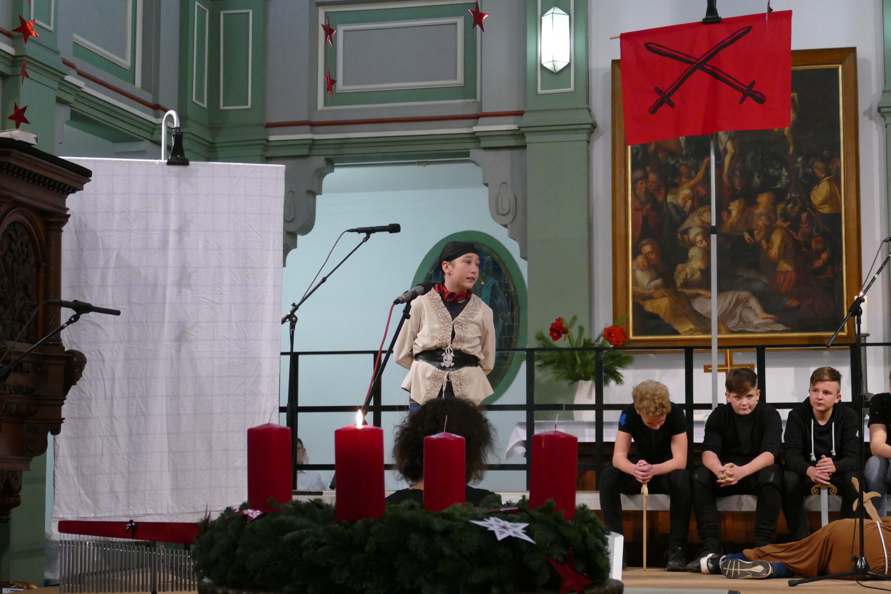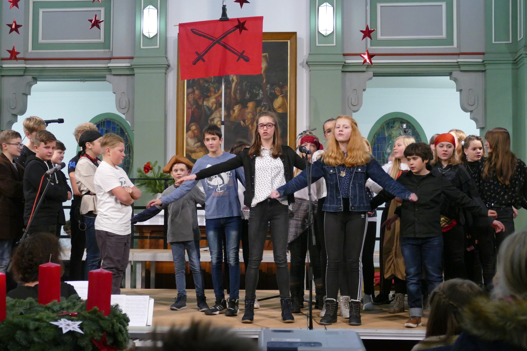 Ein Musical der Klassen 7 (Geschichte über einen geläuterten Seeräubers aus der Feder Christiane Hergers) und der Trickfim der Religionsgruppe 5 (Marienkäfer) folgten, umrahmt von Musik der Bläsergruppe.