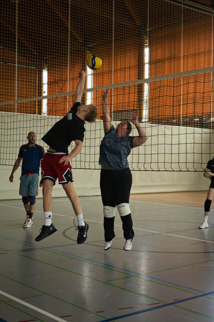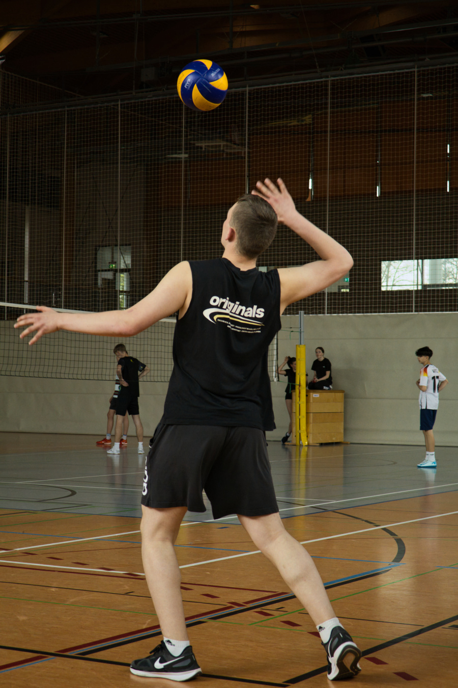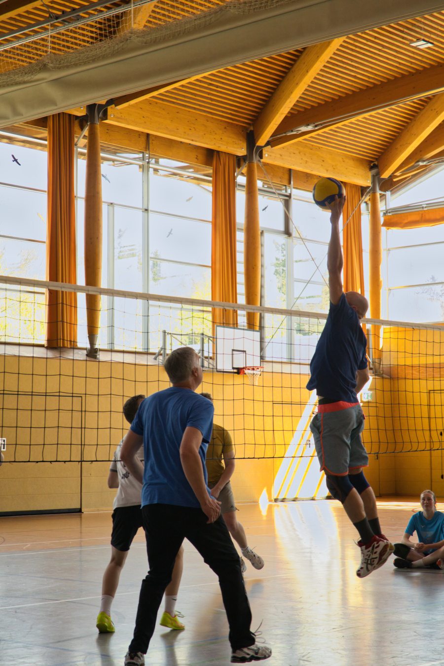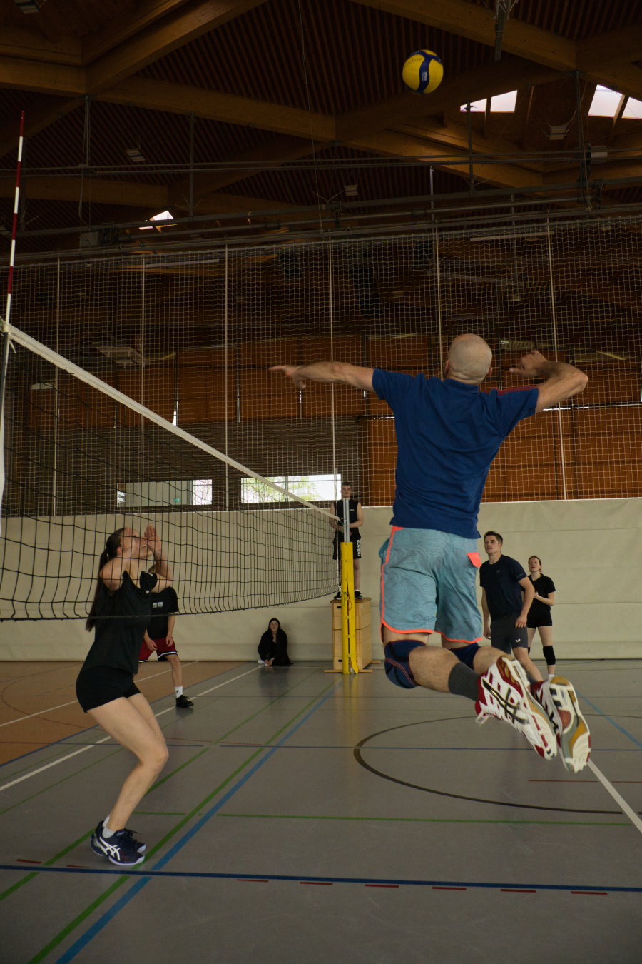 Die Ostereier sind zwar schon gefunden, alle Schokohasen vernascht und auch der Schmuck von den Zweigen abgehangen, das alljährige Osterturnier im Volleyball sollte aber dennoch stattfinden. Zwar stotterte die Anmeldung der verschiedenen Teams des Gymnasiums, weil vielleicht die Ferien die Sicht auf den Termin etwas verdeckten, doch pünktlich zum Anpfiff fanden sich gut 60 Spieler*Innen in der Goldberghalle ein und pritschen was das Zeug hielt.