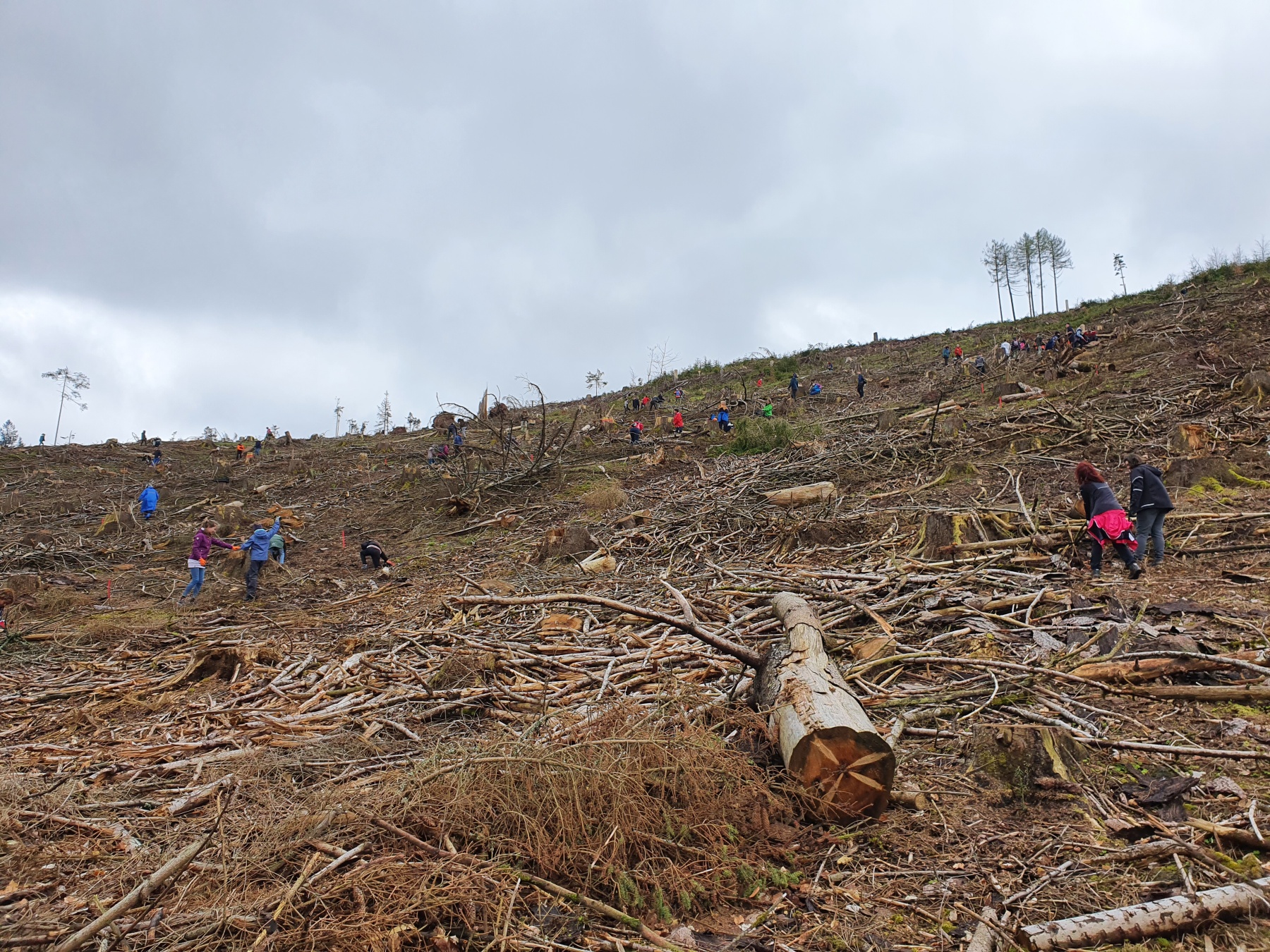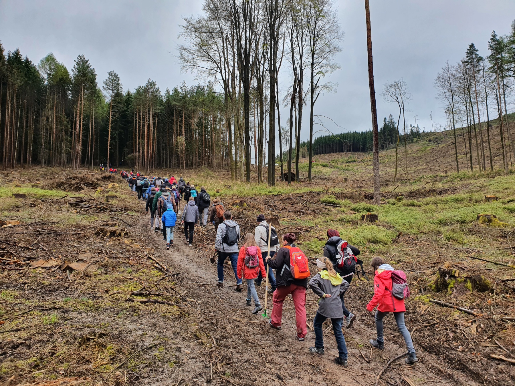 Mit Pflanzhacken ausgestattet, begann um ca. 9 Uhr die Wanderung zum Lindenstein. Dort sah man schon, was für eine Riesenarbeit vor uns lag. Weit und breit waren nur kahle Hänge mit vereinzelten Baumstümpfen zu sehen. Doch das sollte nicht länger so bleiben, gegen 10 Uhr wurde die Aktion, durch das MDR gestartet und mit einem Bläserensemble eingeleitet. Ab da ging es zu den eingeteilten Pflanzspots. Nach einer kurzen Einweisungund dem Abstieg begannen hunderte Helfer*innen das Pflanzen. Es wurde aber nicht nur gepflanzt, sondern auch ein Trollhaus mit Feenwäldchen errichtet, ein Bauwagen für die Nutzung des Kindergartens „Kleine Rasselbande“ angemalt, Müll gesammelt und rund um den Lindenstein Bänke aufgestellt. Für alle Helfer*innen gab es kostenlose Verpflegung. Ab 12.30 Uhr kamen weitere Vereine zum Pflanzen. Um 16 Uhr war klar, die 10.000 Bäume wurden geschafft, es waren sogar mehr als 16.000 Setzlinge, die gepflanzt wurden. Egal, wer am Ende gewinnt. Ohrdruf hat in jedem Fall schon gewonnen, denn diese Aktion hat nicht nur Spaß gemacht, sondern einen Mehrwert für die Stadt und die Menschen geschaffen.