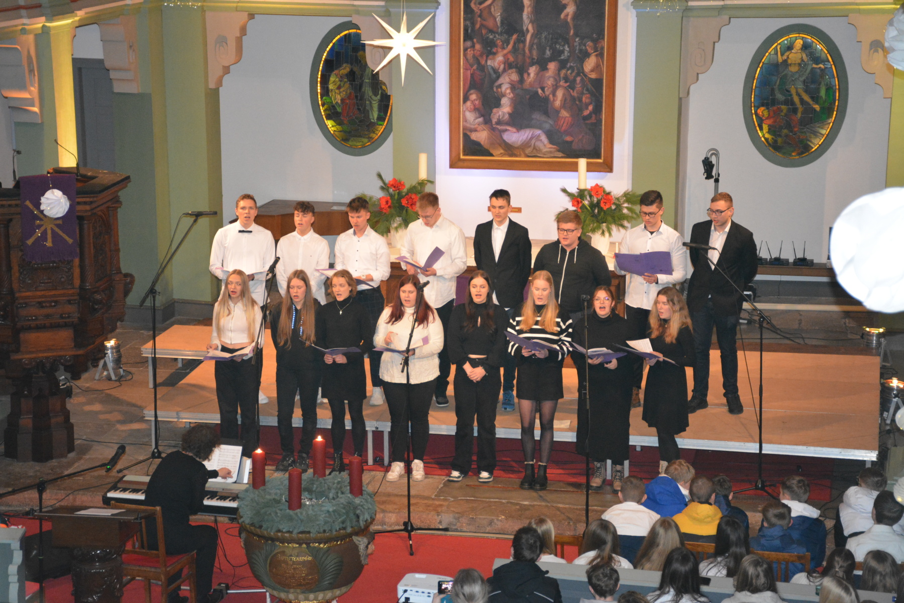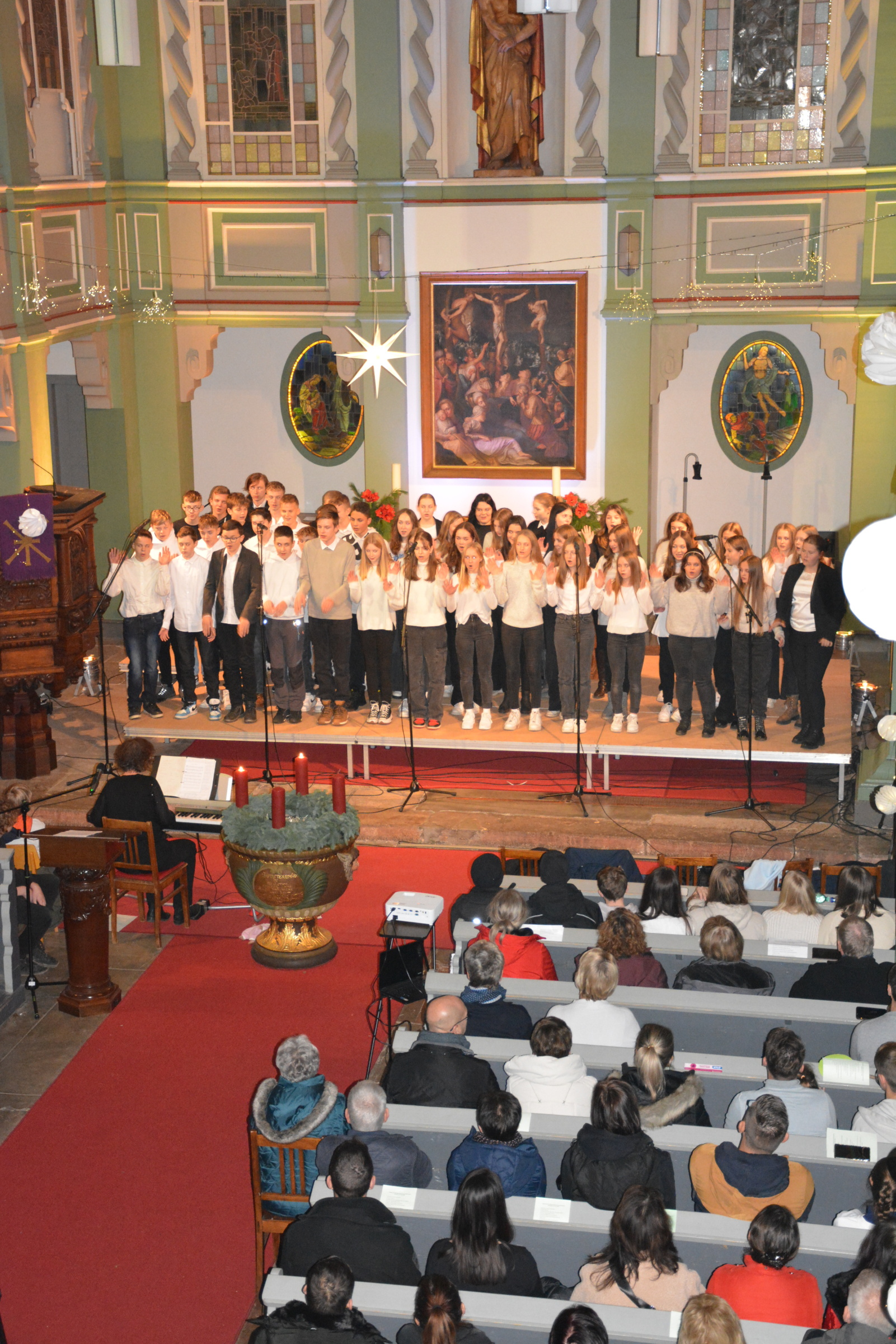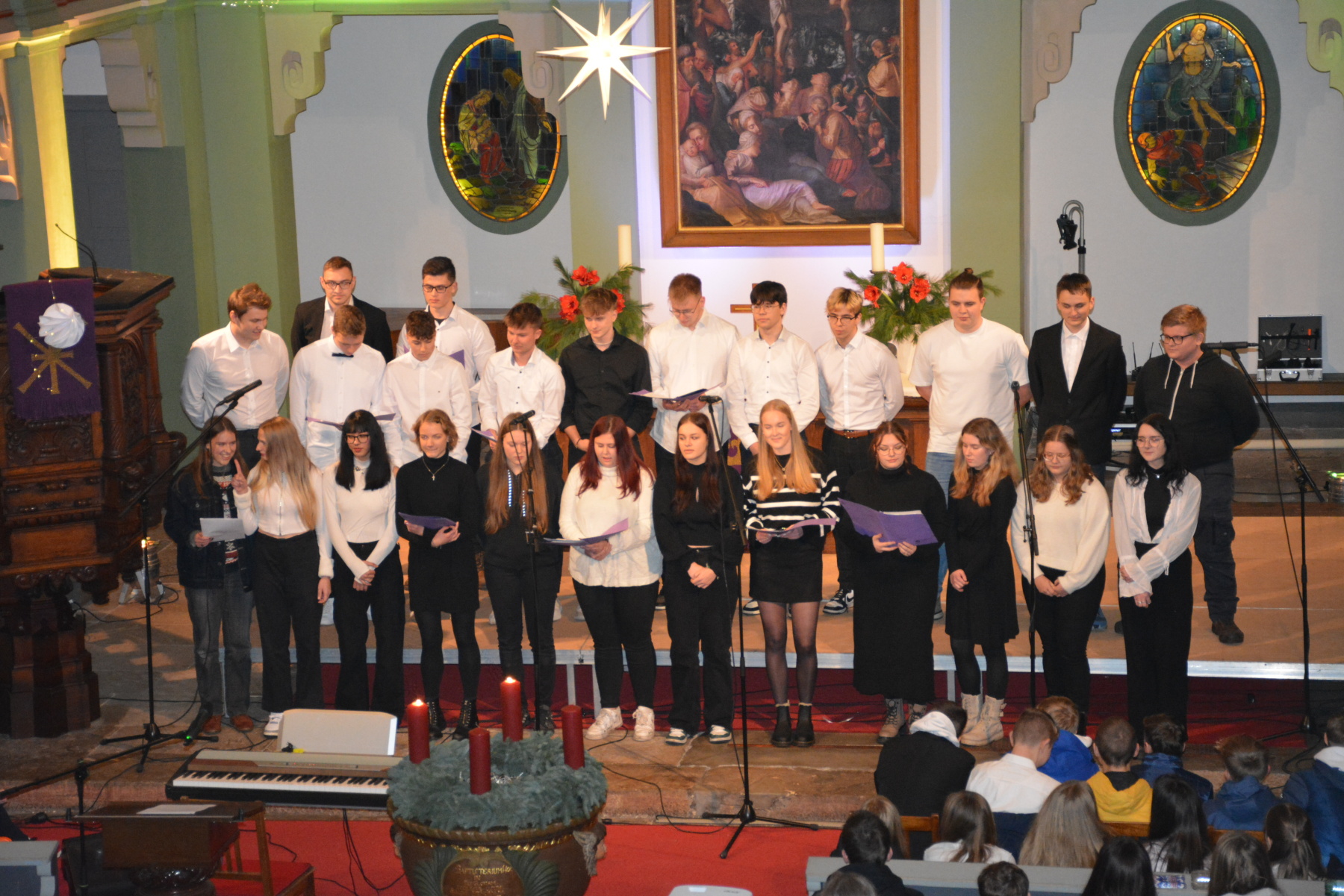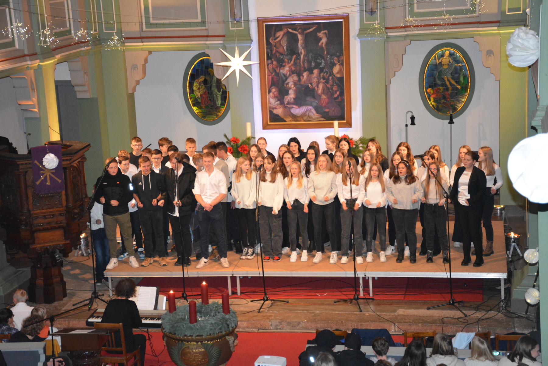 In der festlichen Atmosphäre der Vorweihnachtszeit durften wir am vergangenen Mittwoch, den 13. Dezember, um 19:00 Uhr ein außergewöhnliches Ereignis erleben – das Weihnachtskonzert des Gymnasium „Gleichense“ Ohrdruf. Als Schulleiter bin ich stolz darauf, unsere talentierten Schülerinnen und Schüler bei dieser Gelegenheit zu sehen, wie sie ihr musikalisches Können auf eindrucksvolle Weise präsentieren.
