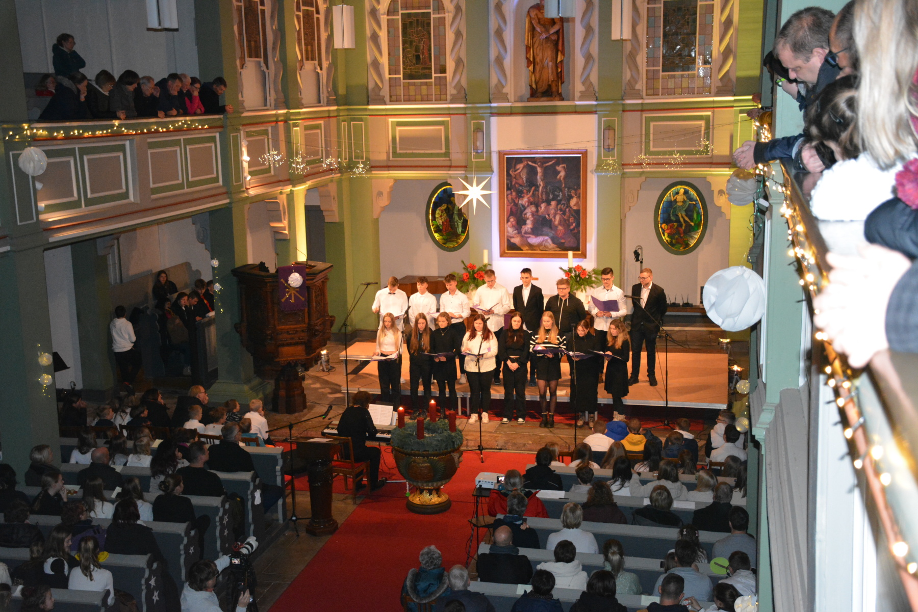 Besonderer Dank gebührt auch Frau Pfarrerin Bomm und der Kirchgemeinde für die Erlaubnis, die beeindruckende Trinitatiskirche in Ohrdruf nutzen zu dürfen. Die festliche Atmosphäre dieses wunderschönen Gotteshauses hat das Weihnachtskonzert zu einem ganz besonderen Ereignis gemacht.