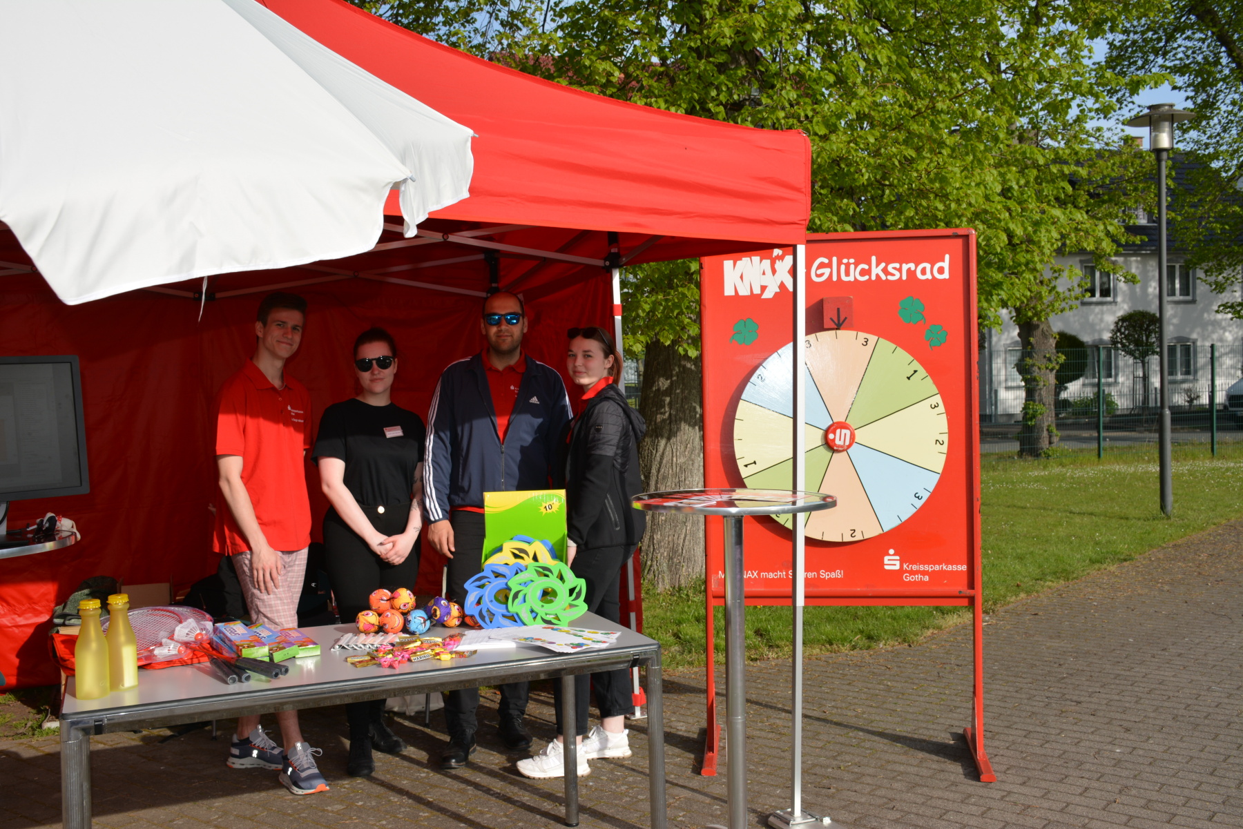 Die Veranstaltung begann am Dienstagmorgen um 7.30 Uhr. Die Schülerinnen und Schüler wurden auf dem Sportplatz empfangen und durch den Schulleiter Herrn Marschner, sowie zwei Schülern aus der Klassenstufe 11 recht herzlich begrüßt. Die Läuferinnen und Läufer bekamen ihre Startnummern ausgehändigt und nach einer intensiven Erwärmung folgten die Läufe der einzelnen Klassenstufen. Die Klassenstufe 5 und 6 hatten eine Laufzeit von 20min zu absolvieren, alle anderen Klassen hatten einen 30-minütigen Lauf vor sich. Während des Laufs erlebte man eine positive Atmosphäre der Schulgemeinschaft und Solidarität. Die Teilnehmerinnen und Teilnehmer feuerten sich gegenseitig an und ermutigten sich, ihre persönlichen Ziele zu erreichen. Kinder, Eltern, Lehrer und lokale Unterstützer bildeten eine bunte Mischung engagierter Menschen, die sich gemeinsam für eine gute Sache einsetzten. Durch energiegeladene Musik und unser Moderationsteam wurden die Teilnehmerinnen und Teilnehmer während ihres Laufes immer wieder motiviert. Anschließend konnten sich die Läufer am Verpflegungsstand der Kursstufe 11 stärken und ein glückliches Händchen am Glücksrad der Kreissparkasse Gotha beweisen.