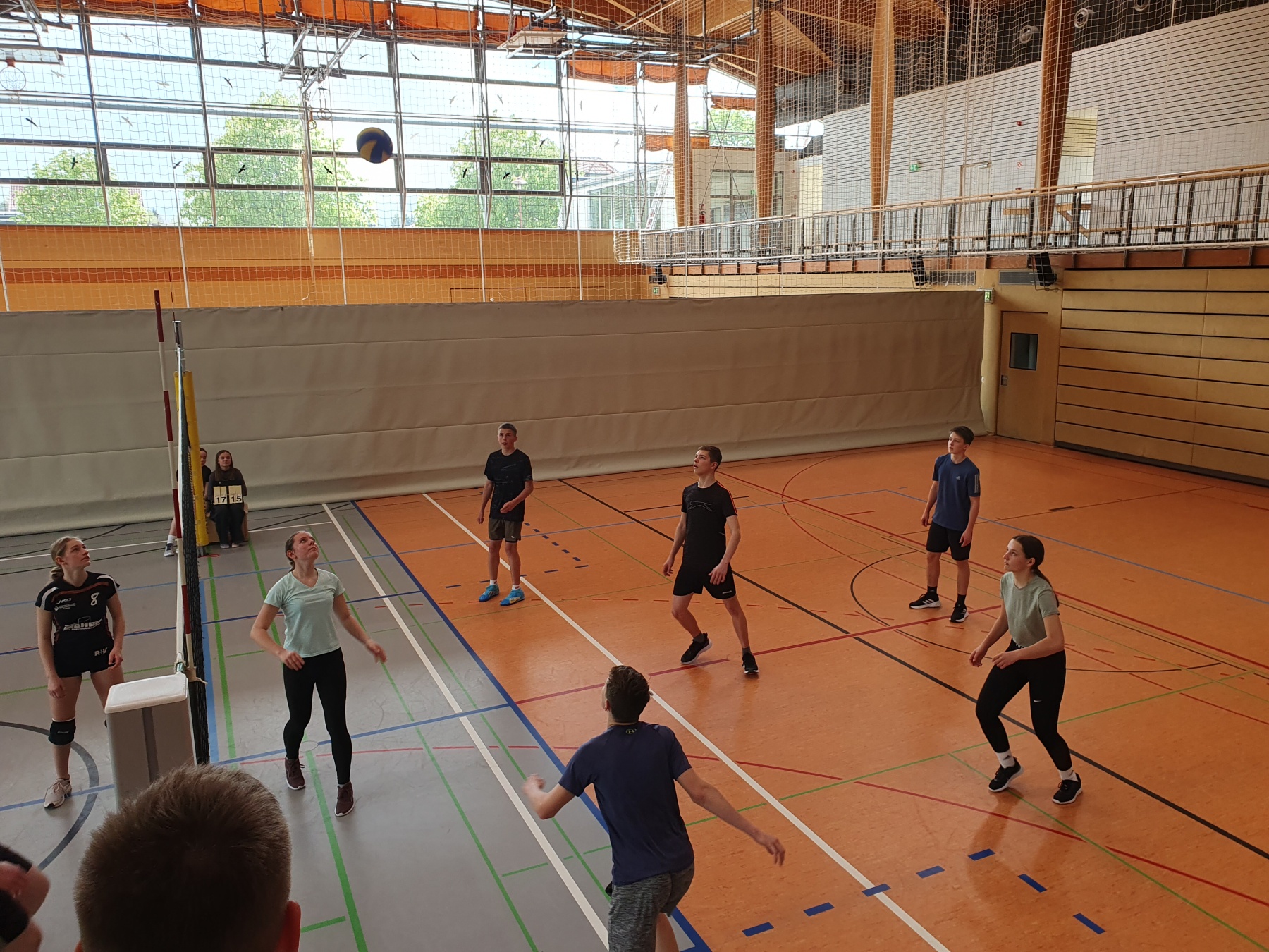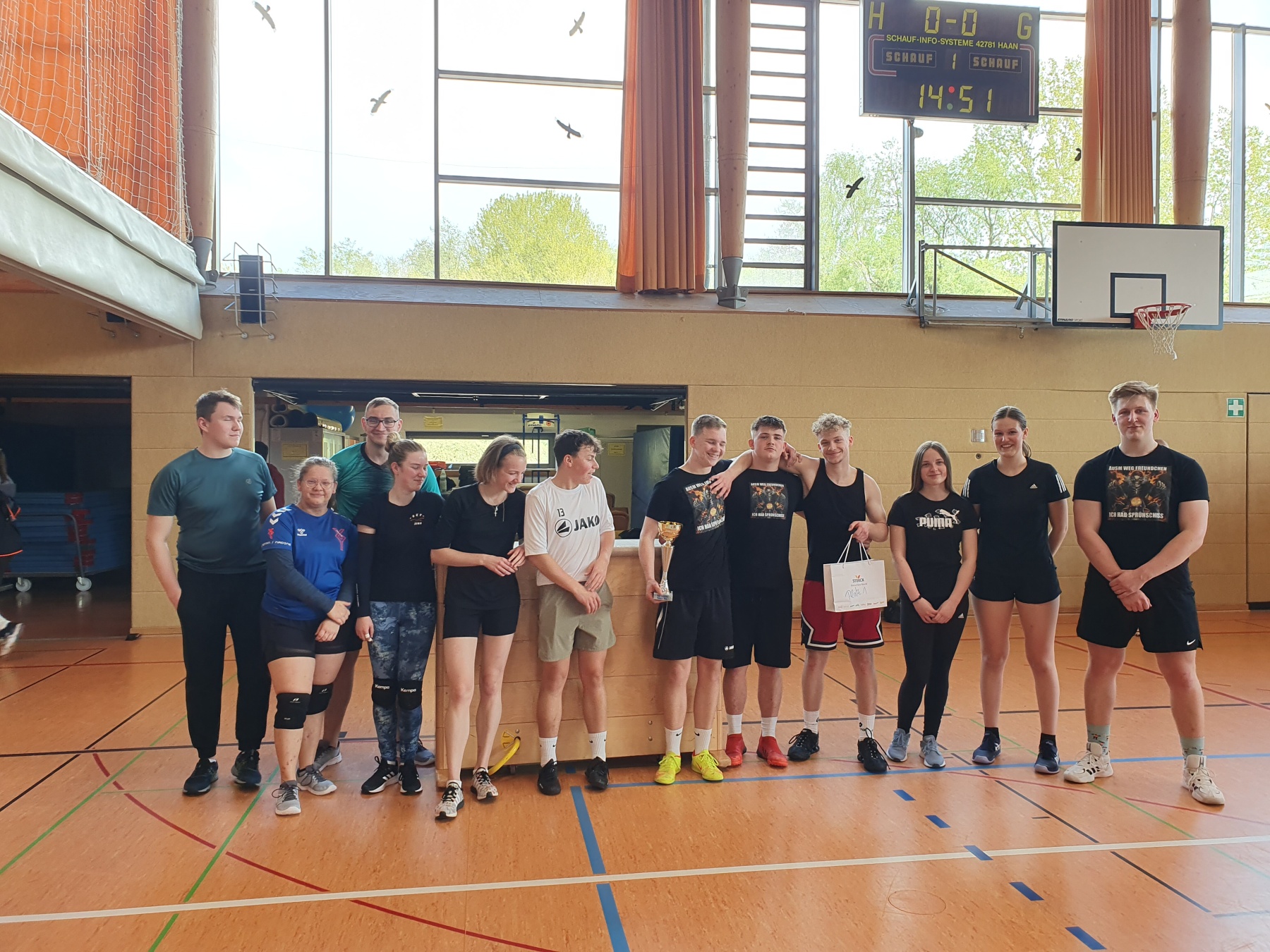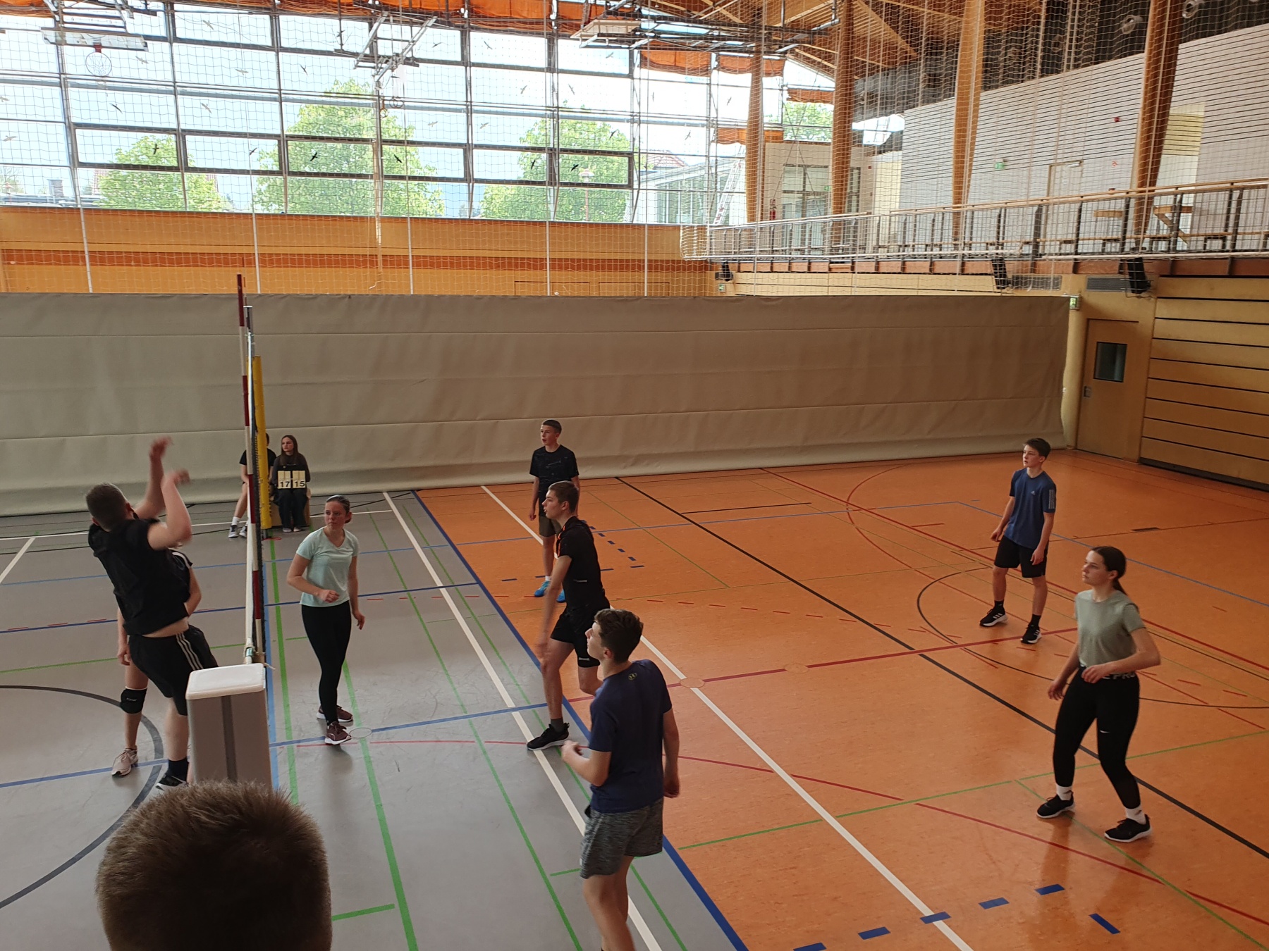 Abgerundet wurde das Turnier traditionell mit dem Schüler- Lehrer Spiel, in dem seit Anbeginn dieser Begegnung das Abituriententeam eine mobile Lehrermannschaft herausfordert, um wenigstens einmal im Schulleben die Nase vorn zu haben. Geglückt ist das noch nie, doch die Herausforderer werden nicht müde. Und auch in diesem Jahr hatten die Schüler*Innen das spielerische Nachsehen, wenngleich sie die Pädagogen im zweiten Satz beim Spielstand von 20:20 denkbar knapp am Rande einer Niederlage hatten. Vielleicht im nächsten Jahr, wenn der Turniersieger anklopft. Wir werden berichten.