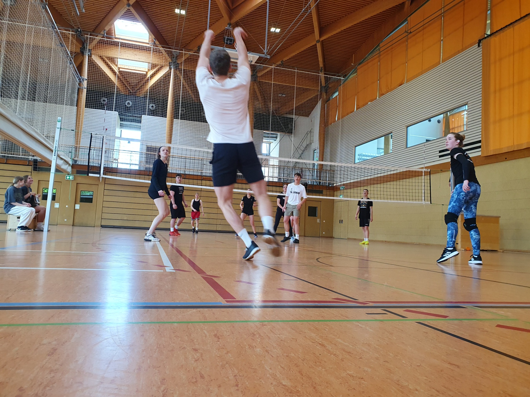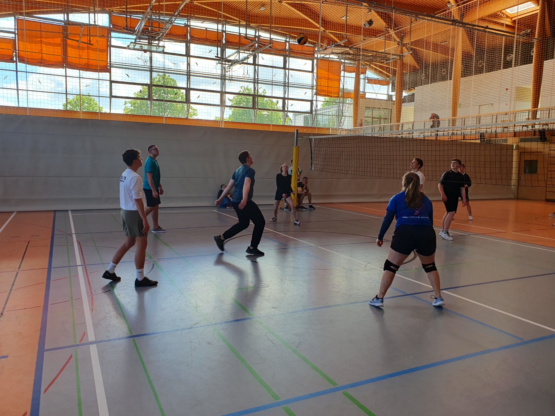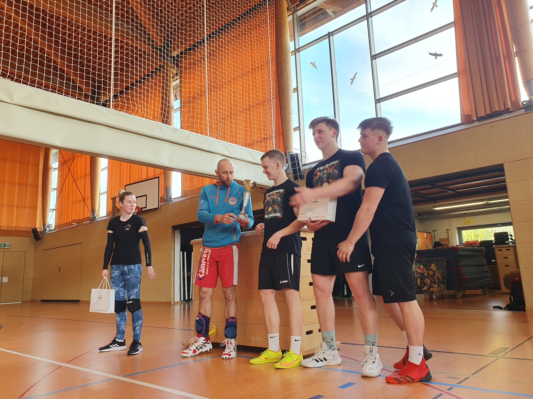 Abgerundet wurde das Turnier traditionell mit dem Schüler- Lehrer Spiel, in dem seit Anbeginn dieser Begegnung das Abituriententeam eine mobile Lehrermannschaft herausfordert, um wenigstens einmal im Schulleben die Nase vorn zu haben. Geglückt ist das noch nie, doch die Herausforderer werden nicht müde. Und auch in diesem Jahr hatten die Schüler*Innen das spielerische Nachsehen, wenngleich sie die Pädagogen im zweiten Satz beim Spielstand von 20:20 denkbar knapp am Rande einer Niederlage hatten. Vielleicht im nächsten Jahr, wenn der Turniersieger anklopft. Wir werden berichten.
