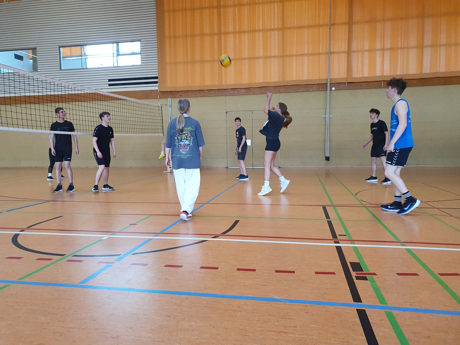 Osterzeit ist nicht nur bunte Eierzeit, sondern am Gymnasium Gleichense auch immer Zeit des bunten Balles. Der Volleyball wird gebaggert, gepritscht und sogar geschmettert. Sechs Teams hatten sich für das Turnier gemeldet, von denen die Jüngsten aus Klasse sieben waren und sich gar nichts ausrechneten. Zwar gewannen sie kein Spiel, aber die Erfahrung und der freudvolle Wettkampf brachte Klassen, die sonst wenig miteinander zu tun haben, zumindest am Netz einmal mächtig nahe. Spannende Spiele bestritten Schüler*Innen aus Klasse neun und noch knapper wurde es im Finale. Für das hatten sich die aktuellen Abiturienten gegen ihre Nachfolger der Kurse elf qualifiziert. Hauchdünn war es am Ende, denn die ABI- Kandidat*Innen rackerten und kämpften um jeden Ball. Mit 19:21 mussten sie sich letztlich geschlagen geben.