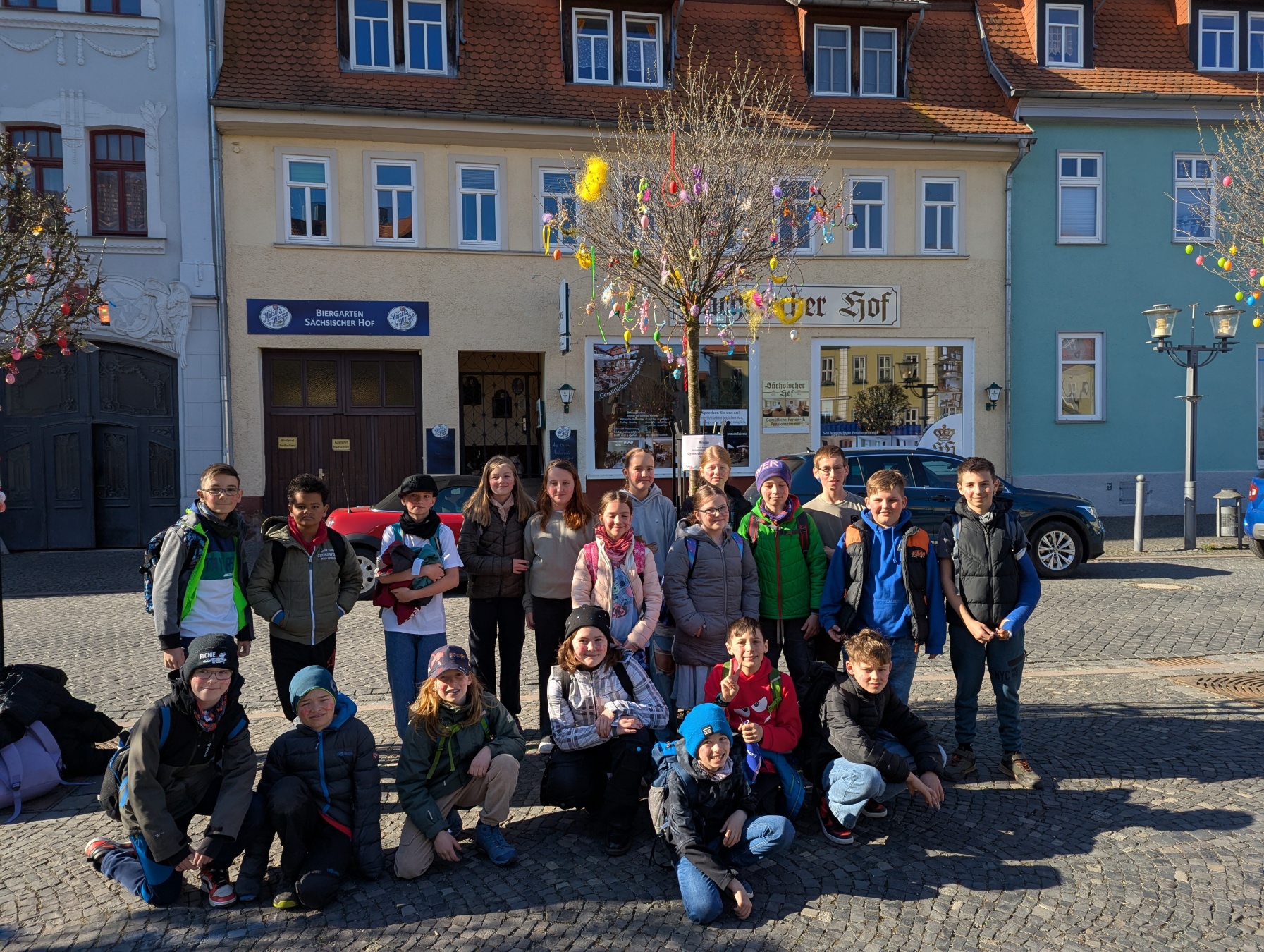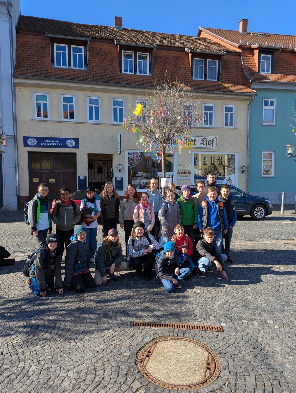 Die Klasse 5/3 schmückte in diesem Jahr gemeinsam mit Herrn Nagel und Frau Amling den Baum des Gymnasiums auf dem Ohrdrufer Marktplatz.