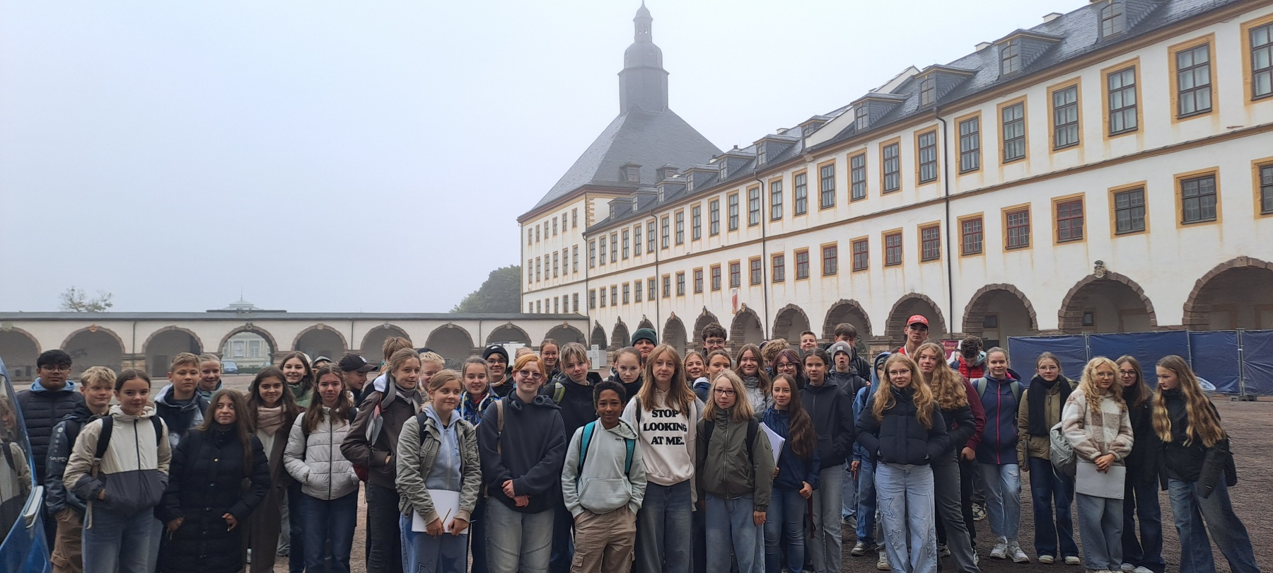 Um das Thema „Absolutismus/Barock“ im Geschichtsunterricht besser zu verstehen und anschaulicher zu erleben, unternahmen die achten Klassen des Gymnasium Gleichense am Mittwoch, den 01.10.2025, eine Geschichtsexkursion zum Schloss Friedenstein nach Gotha, welches einst die Residenz der Herzöge von Sachsen-Gotha war.