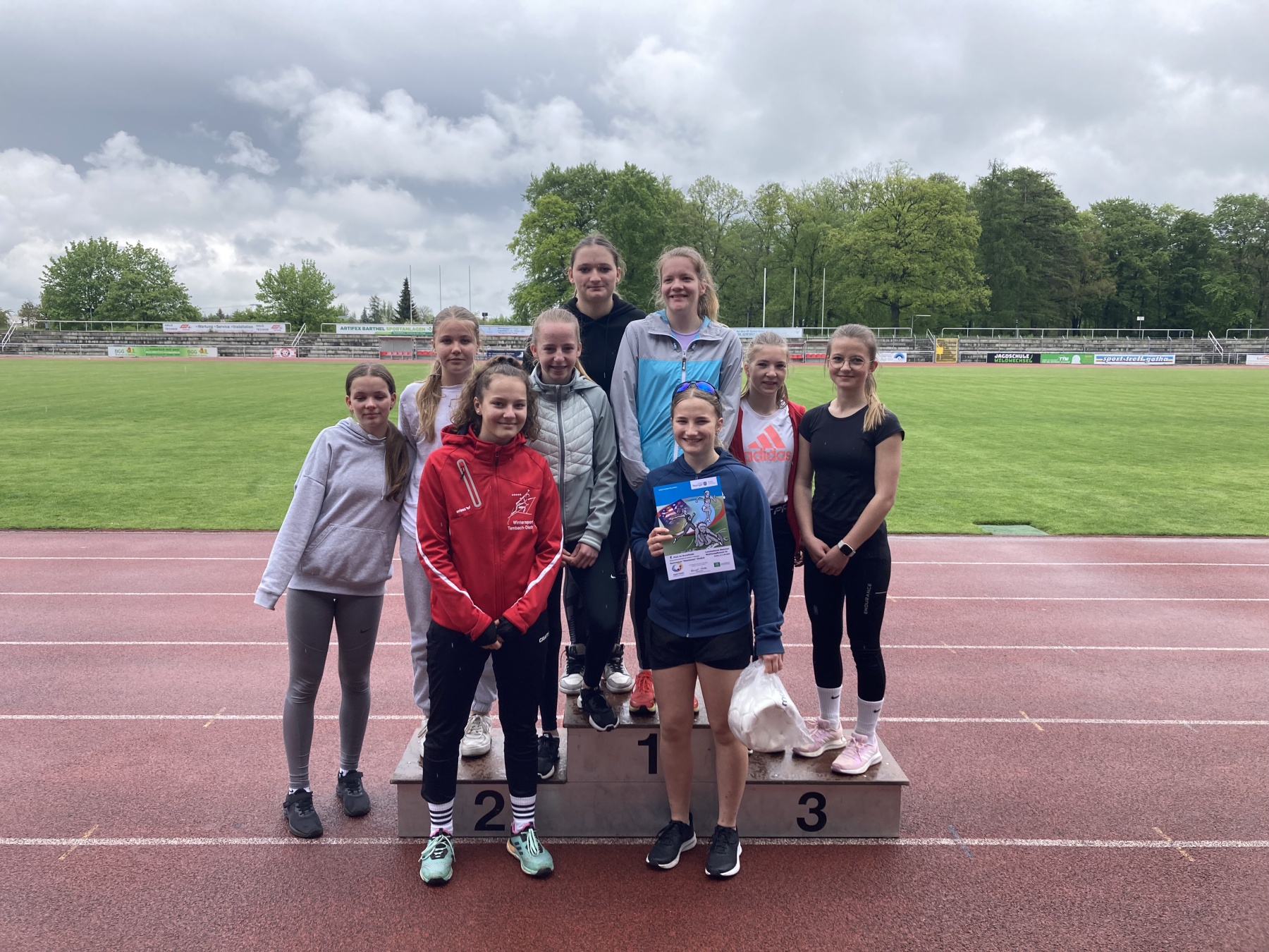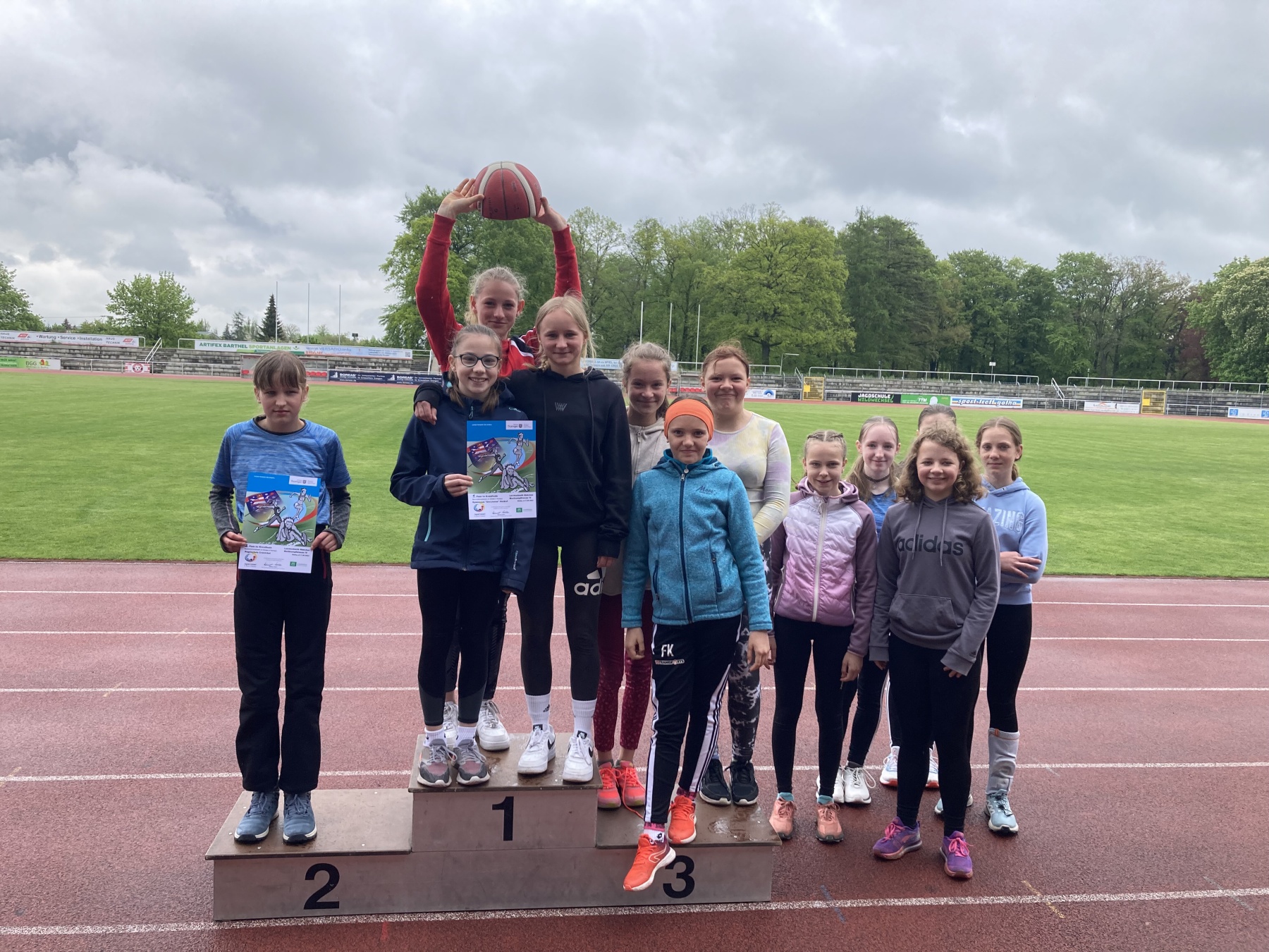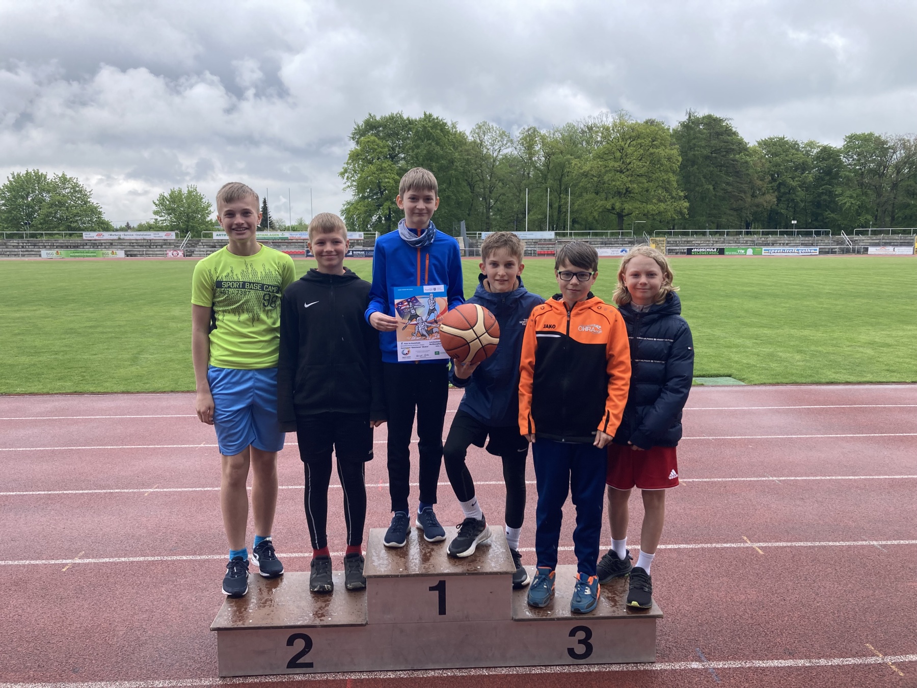 Am Donnerstag ging es für knapp 45 Gleichensianer zum Kreisfinale der Leichtathletik. Bereits im Vorfeld hatten sich automatisch unseren ältesten Jungen und Mädchen der Wettkampfklasse II für die nächste Runde qualifiziert. Möglichst viele unserer vier Mannschaften wollten ihnen folgen. Und so sollte es kommen! Trotz ungünstiger Wetterbedingungen ging es von Beginn an im Volksparkstadion Gotha heiß zur Sache. In den Disziplinen 800m, Weitsprung, Sprint, Staffel, Ballwurf und Kugelstoßen gaben unsere SportlerInnen alles – und das wurde dann auch belohnt. Die WK III der Jungen landete trotz starken Wettkampfes auf dem 2. Platz. Sowohl die WK III, die WK IV der Mädchen als auch die WK IV der Jungen belegten jeweils den 1. Platz. Somit qualifizierte sich unser Gymnasium Ohrdruf mit FÜNF Mannschaften für das Schulamtsfinale am 01.06.2023 in Arnstadt. Jetzt heißt es noch etwas trainieren bis dahin und dann mit Vollgas in den nächsten Mehrkampf. Ein großes Dankeschön an alle SchülerInnen für den fantastischen Einsatz sowie allen WettkampfrichterInnen für die Unterstützung.