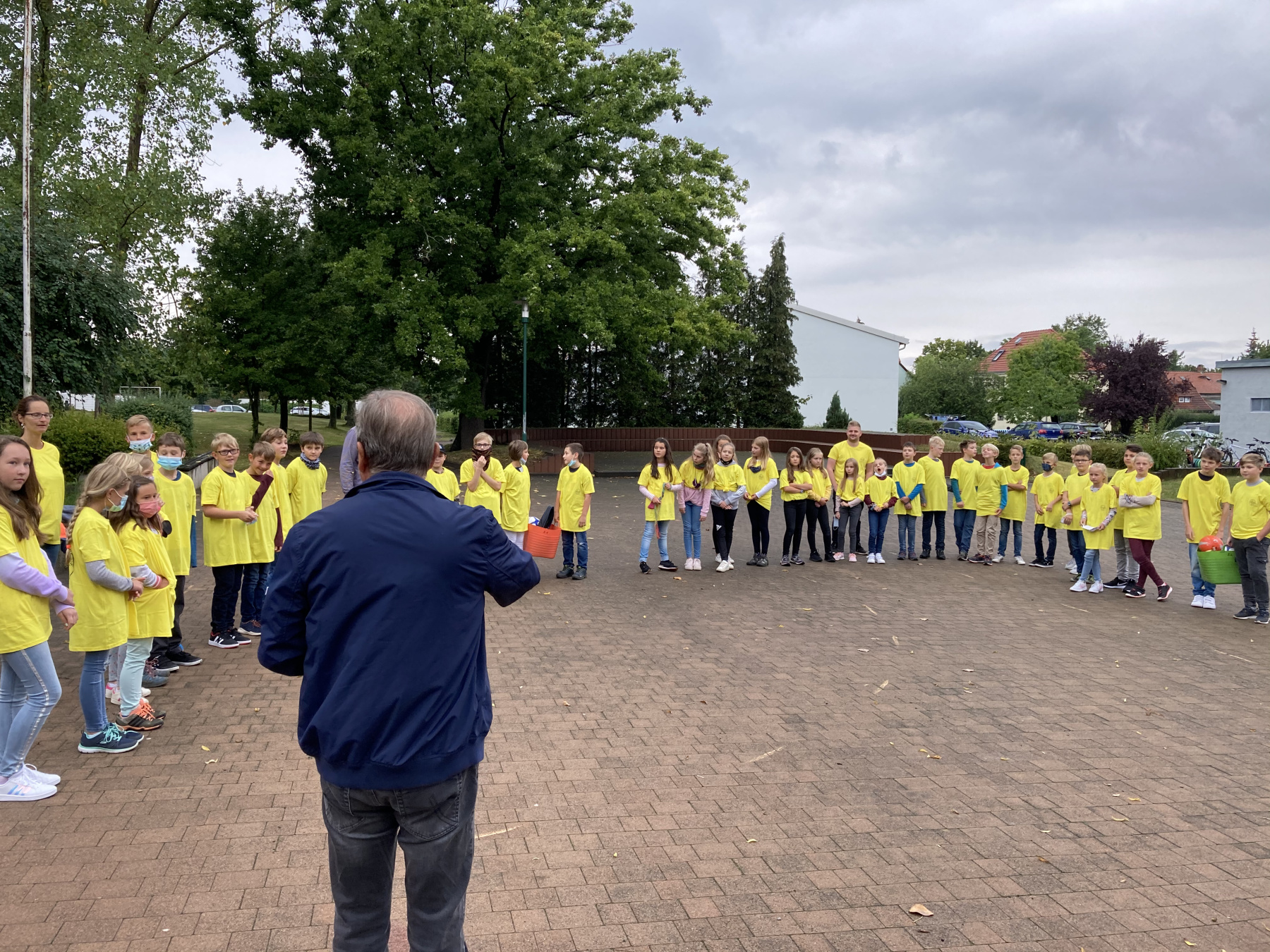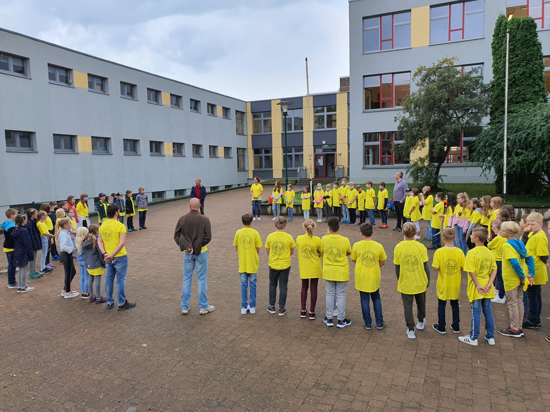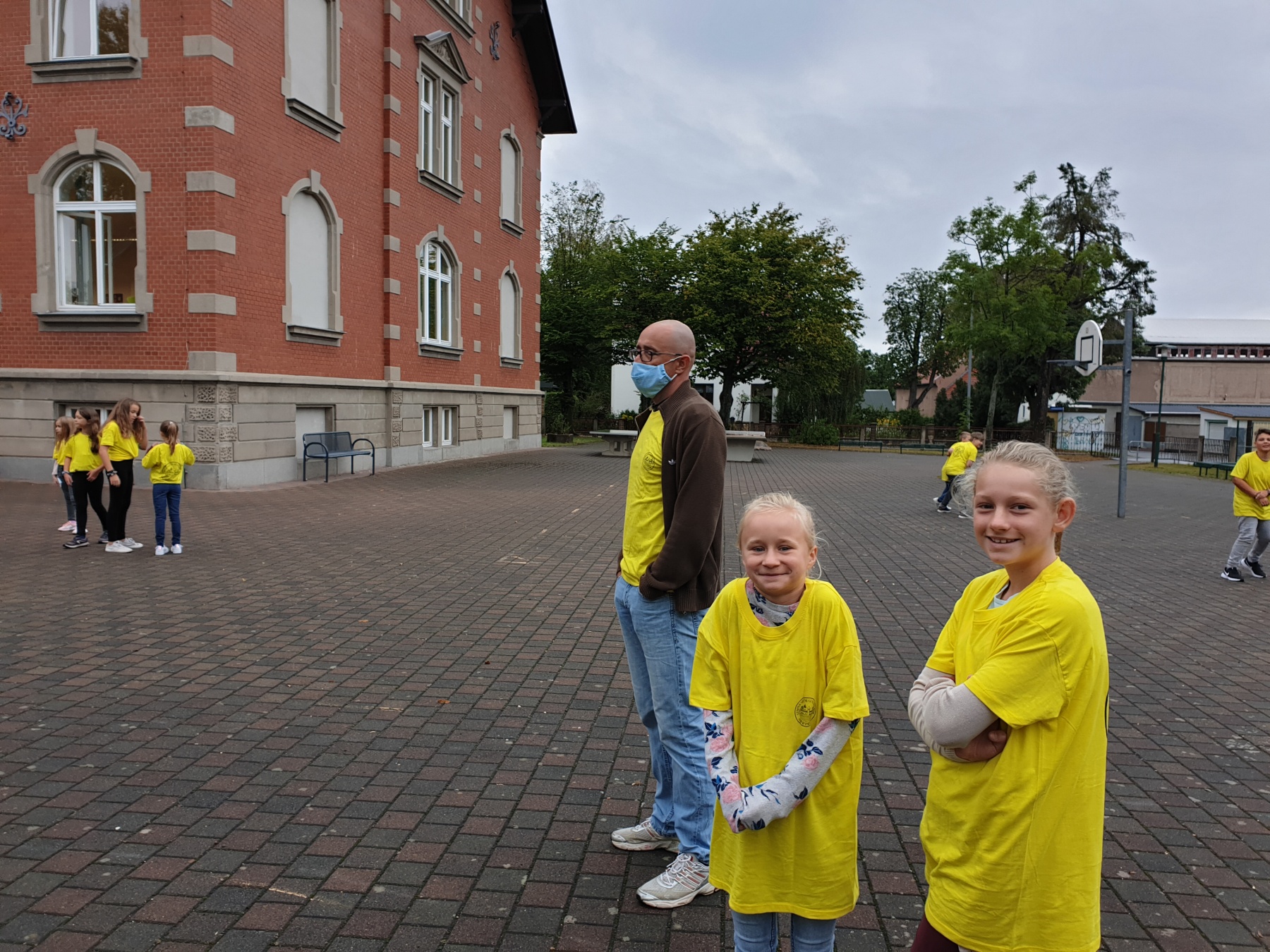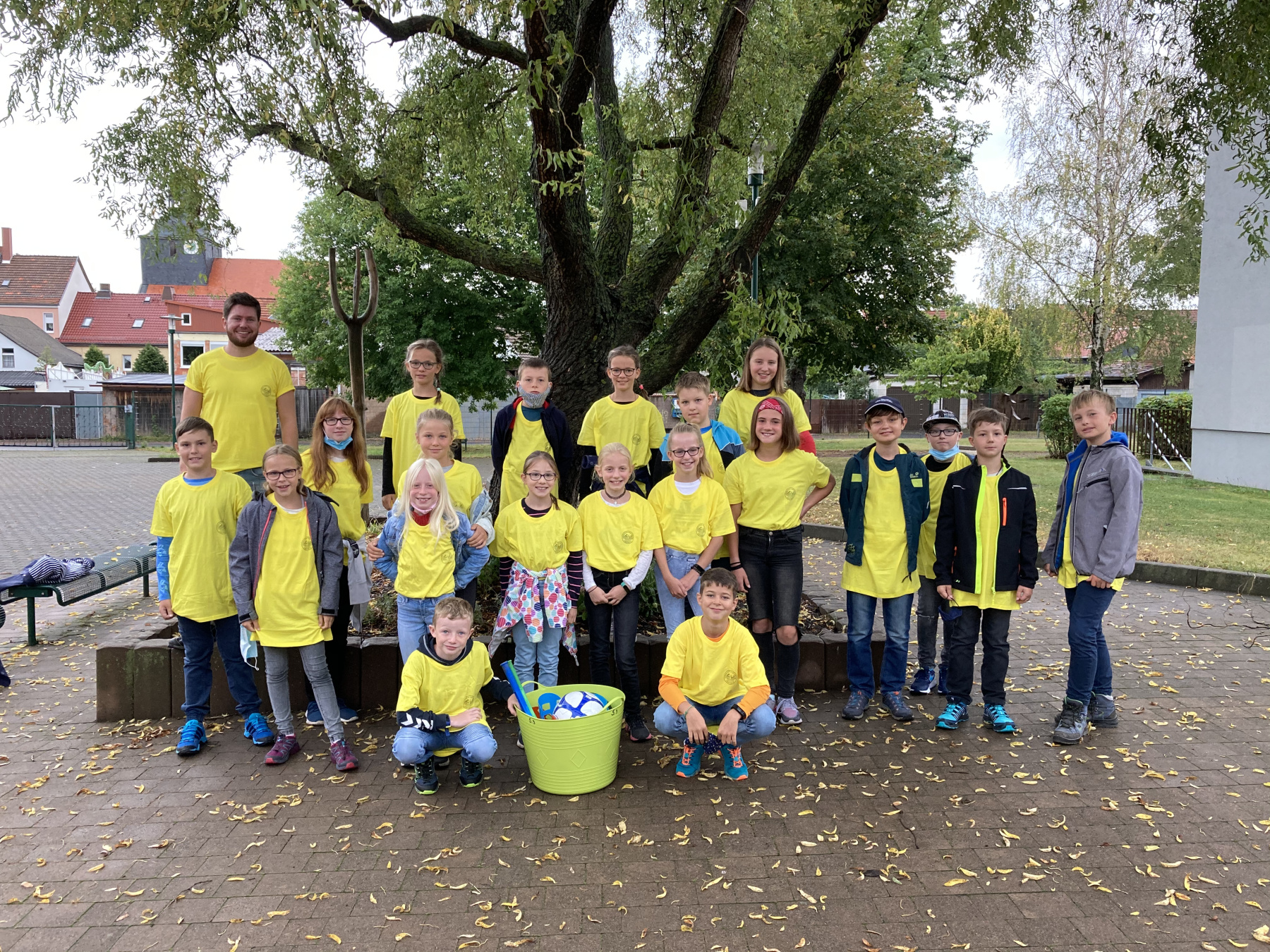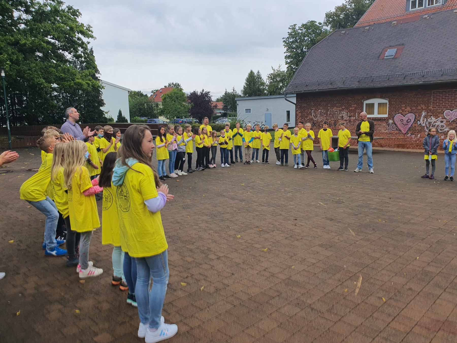 Aber auch Spaß und Spiel durften an den ersten beiden Schultagen nicht fehlen. Von unserem Direktor Herrn Dr. Rühl bekam jede Klasse eine Spielkiste für die aktive Pausengestaltung überreicht. Zum abschließenden Fototermin mit den neuen Schulshirts winkten alle fröhlich in die Kamera.