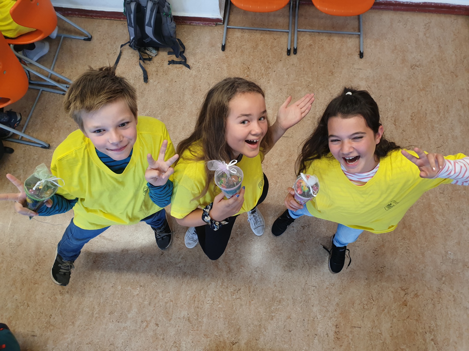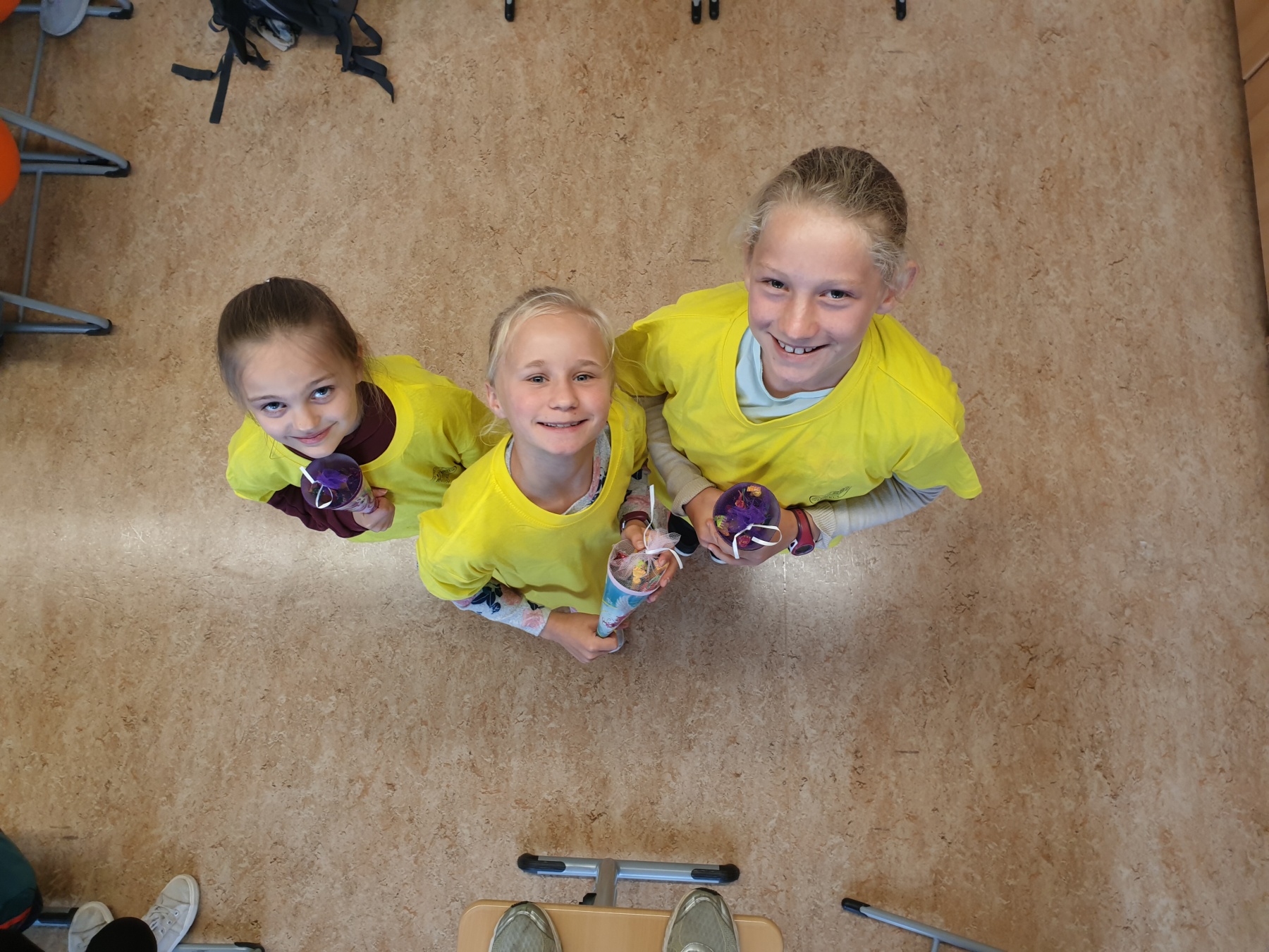 Dort lag auf jedem Platz ein T-Shirt mit dem Aufdruck vom Gymnasium Gleichense und eine Zuckertüte.
