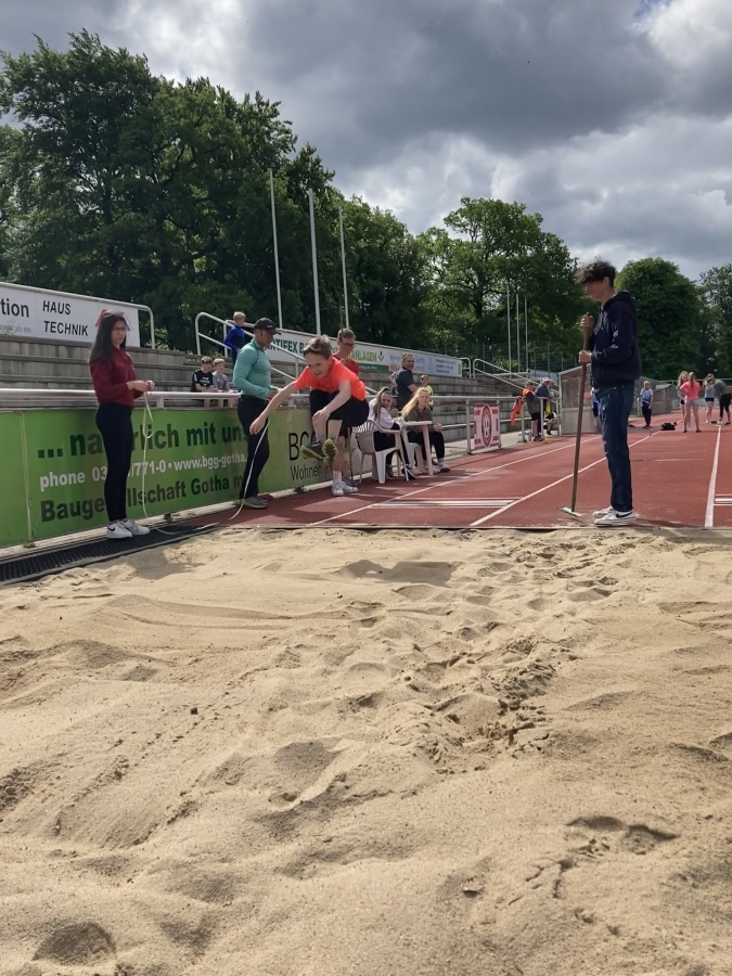 Am Dienstag, 24.05.2022 fanden im Gothaer Volksparkstadion die diesjährigen Wettkämpfe „Jugend trainiert für Olympia“ in der Leichtathletik statt. Im Vorfeld hatten sich bereits drei unserer sechs gemeldeten Teams automatisch für das Schulamtsfinale am 14.06.22 in Arnstadt qualifiziert. Mit den Mädchen und Jungen der WK 4 sowie den Mädchen der WK 2 reisten wir mit knapp 30 SchülerInnen nach Gotha an. Einziger Gegner war dort in allen Wettkampfklassen das Gymnasium Gustav-Freytag.