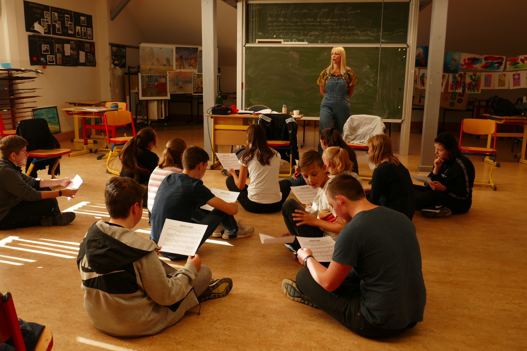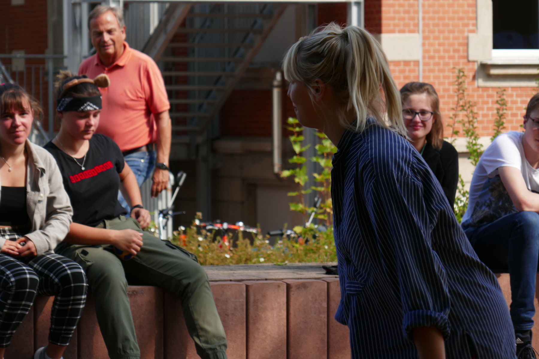 Eine Schülerin berichtet: „Der Tag war untergliedert in viele einzelne Workshops, die sich mit vielen verschiedenen Themenbereichen beschäftigten. Uns Schülern wurden wichtige Themen, wie zum Beispiel fremde Kulturen, Akzeptanz oder Gleichberechtigung durch Gruppendiskussionen oder andere Workshops nähergebracht und wir wurden zum Nachdenken angeregt, was unsere Einstellung bezüglich solcher Themen positiv beeinflusste. Jeder konnte zum besprochenen Thema offen seine Meinung äußern und mit anderen argumentieren. Dabei erlebten wir vielfältige Methoden der einzelnen Workshops in Bereichen wie Theater, Bildende Kunst oder Medien und ließen unserer Kreativität freien Lauf. Es gab viele Gelegenheiten, um kreativ zu werden: fiktive Gespräche, schauspielerische Herausforderungen, Geschichtenschreiben oder das Designen und Vorstellen eines eigenen Produkts.“