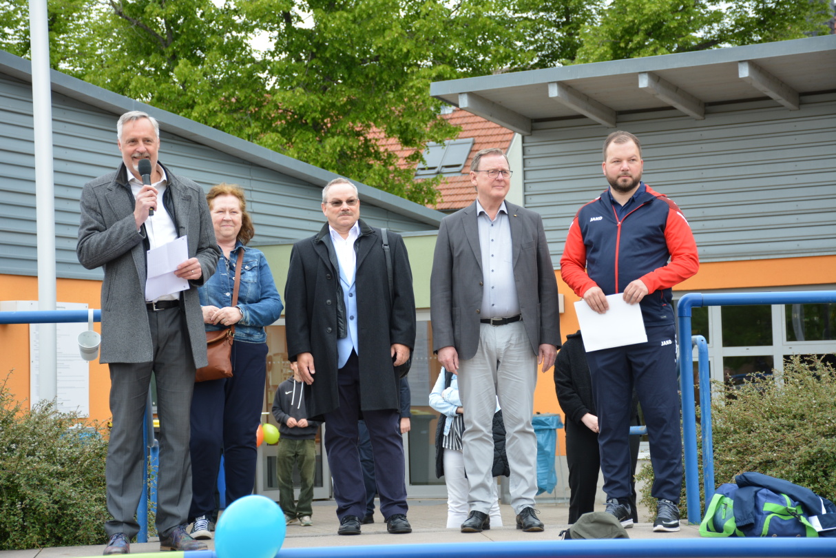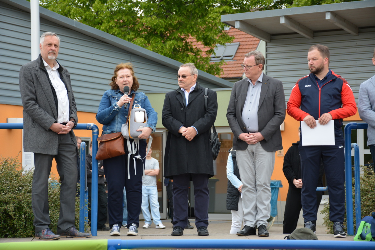 Der Tag begann mit einer stimmungsvollen Begrüßung durch Herrn Marschner, der die vielen aktiven Teilnehmer:innen, Lehrer:innen sowie die zahlreichen Helfer:innen willkommen hieß. Unterstützt wurde die Veranstaltung durch den Besuch unserer Ehrengäste: Vizepräsident des Deutschen Bundetages, Herr Ramelow; Landrat des Landkreises Gotha, Herr Eckert; erster Beigeordneter des Bürgermeisters von Ohrdruf, Herr Zentgraf und die Geschäftsstellenleiterin der Elterninitiative, Frau Allstädt, die mit einfühlsamen und motivierenden Worten das Startsignal für einen besonderen Tag setzten.