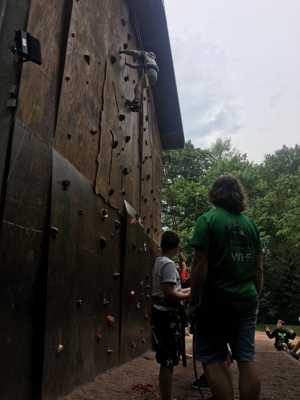 Auch der zweite Tag hielt viele Gruppenaktivitäten bereit. Jeder Schüler konnte dabei seine Geschicklichkeit und Teamfähigkeit an der Kletterwand und im Niedrigseilgarten unter Beweis stellen. Trotz einiger kräftezehrender Stunden fanden sich am Abend fast alle Schüler zur Nachtwanderung ein. Der zweite Tag fand seinen gemütlichen Ausklang mit Stockbrot am Lagerfeuer.