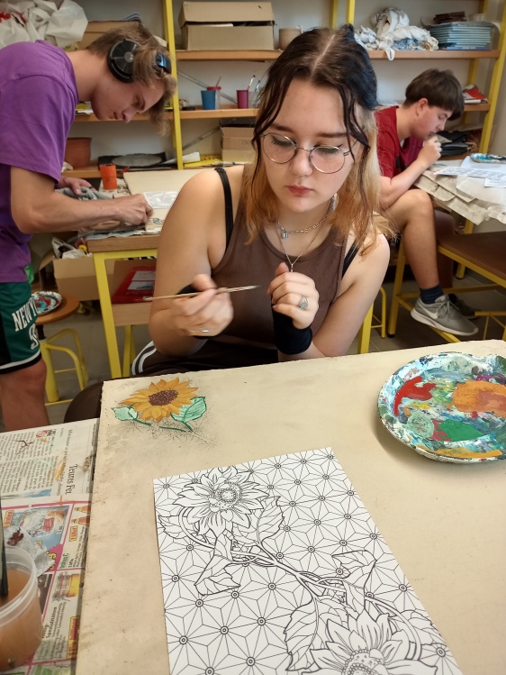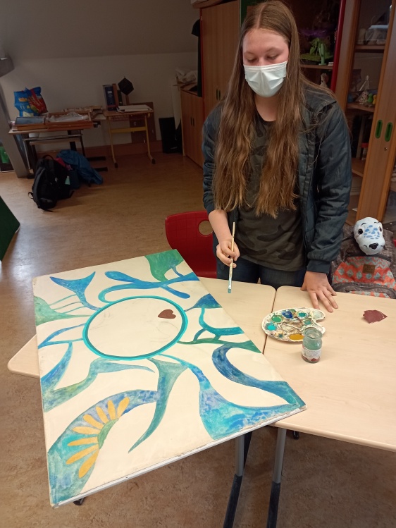 Es entstanden inspirierende Werke auf Platten, die erahnen lassen, wie beeindruckend auch Schüler Kunstwerke an Wänden oder Decken erschaffen können. Vielleicht haben sie irgendwann den Mut, ihre Wände mit Lehm und Kalk zu gestalten.