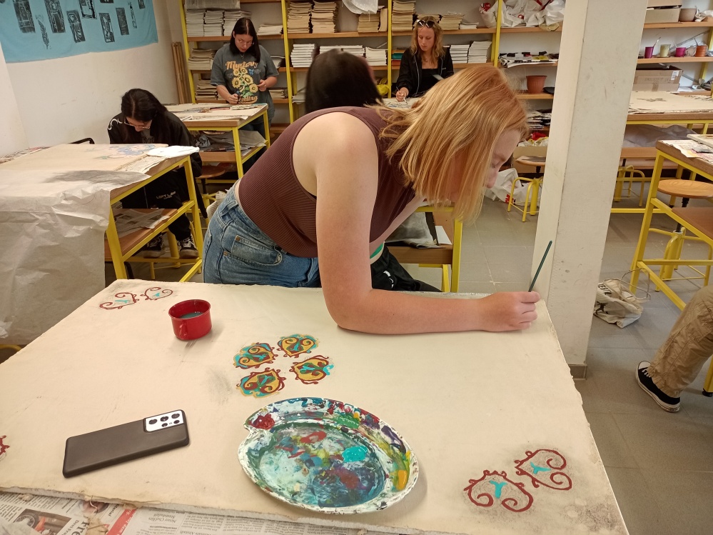Kunst am Bauwerk: Schüler der 10. Klasse arbeiten mit Lehm und Kalk als Basis für dekorative Malereien