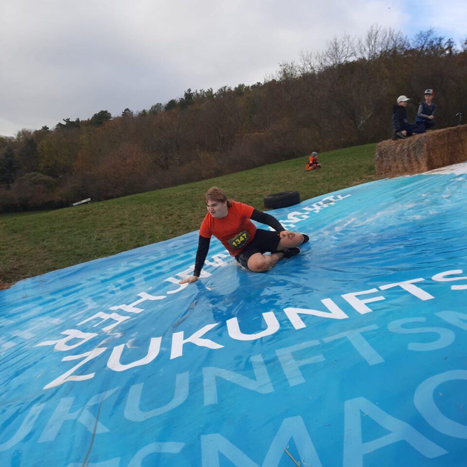 Eiskalte Matsch- und Wassergruben, 2m hohe Hinderniswände, Reifenstapel, Kriechtunnel und eine ca. 100m-Rutschbahn waren nur einige der Herausforderungen, denen sich die jungen Sportler stellen mussten. Zudem galt es, 350 Höhenmeter zu überwinden und dabei die malerische Umgebung Mühlbergs zu erkunden. Mit Teamwork, guter Laune und viel Motivation kämpften sich unsere Schüler durch den Parcours.
