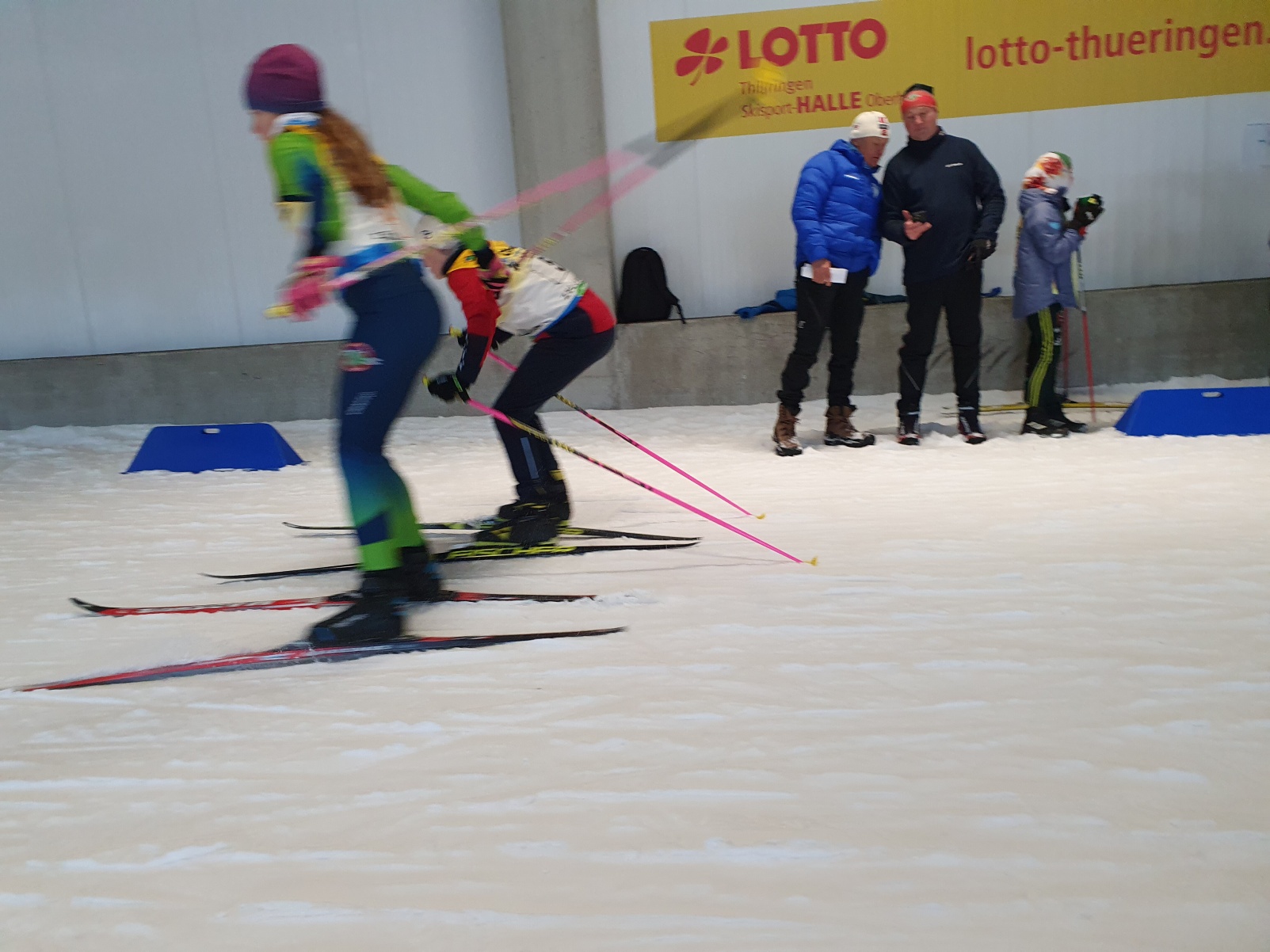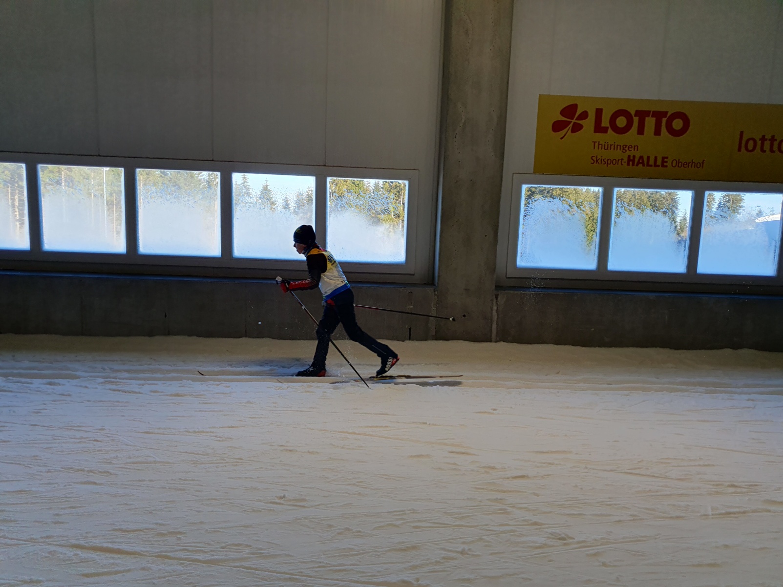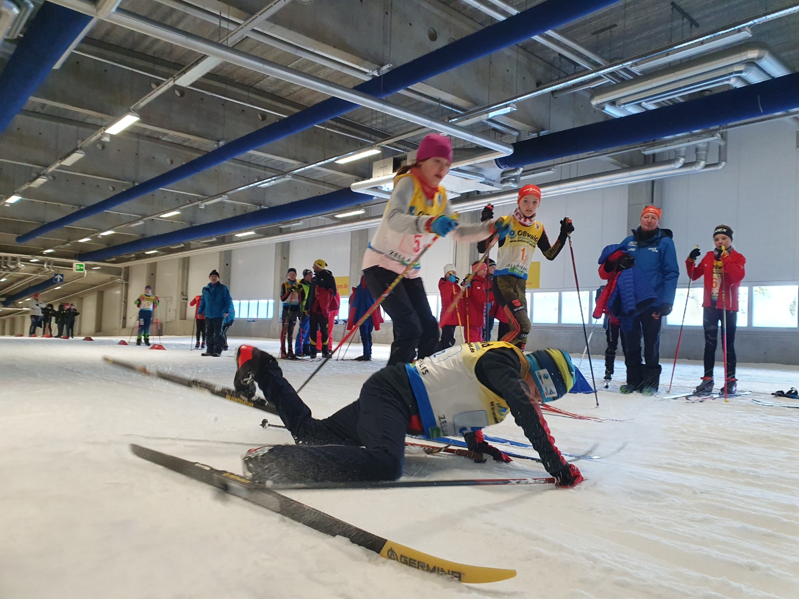 Das Sportschuljahr beginnt alljährlich im Schnee. Und, als hätte Petrus gewusst, dass Skilanglauf stattfindet, so war auch Schnee und blauer Himmel vorbestellt. Schade nur, dass die möglichen Strecken schon für die internationalen Profis bereitet wurden und somit alles in die Skihalle verlegt wurde. Mit dem Landesfinale im Skilanglauf werden in den Wettkampfklassen IV und V die Finalisten für das Bundesfinale in Schonach (Schwarzwald) ermittelt. Zwei Disziplindurchläufe sind dafür zu bewältigen. Einerseits gilt es in einem Einzelrennen gegen die Uhr und alle Konkurrenten anzutreten und dabei diverse Hindernisse und Technikelemente schnellstmöglich zu meistern. Andererseits heißt es, noch genug Energie im Tank zu haben, um in einer anschließenden Teamstaffel aus zwei Jungen und zwei Mädchen nochmals Vollgas geben zu können.