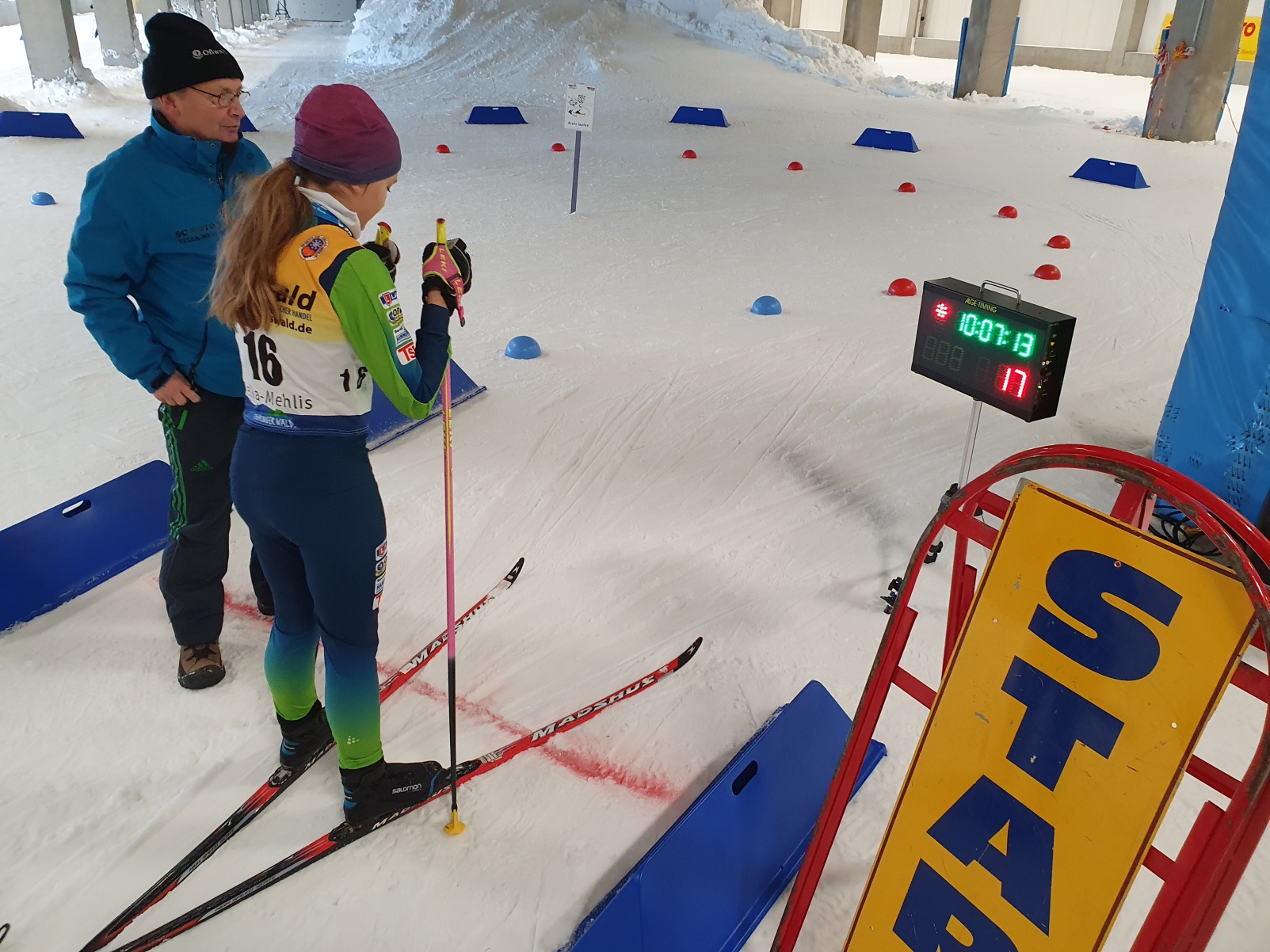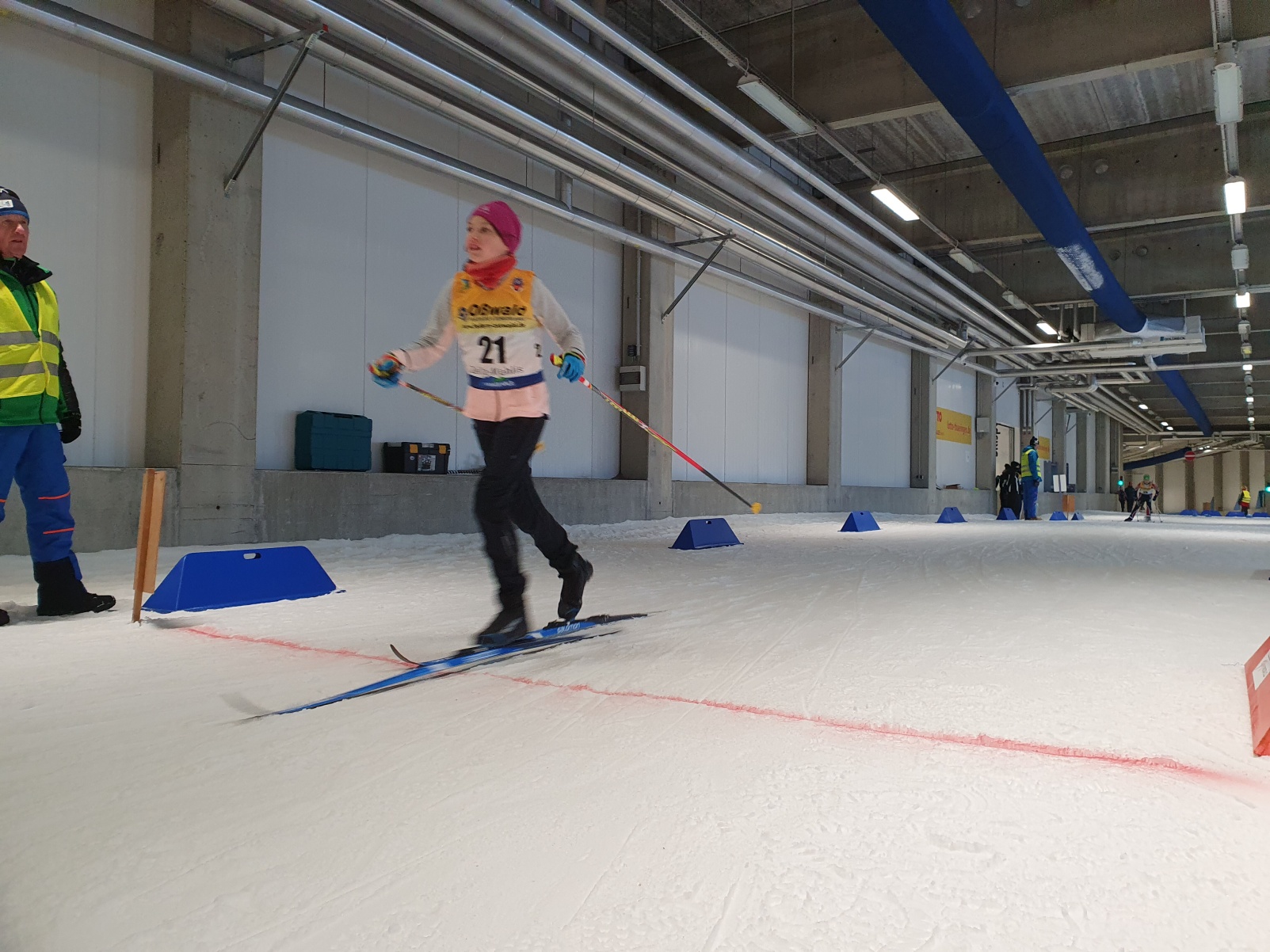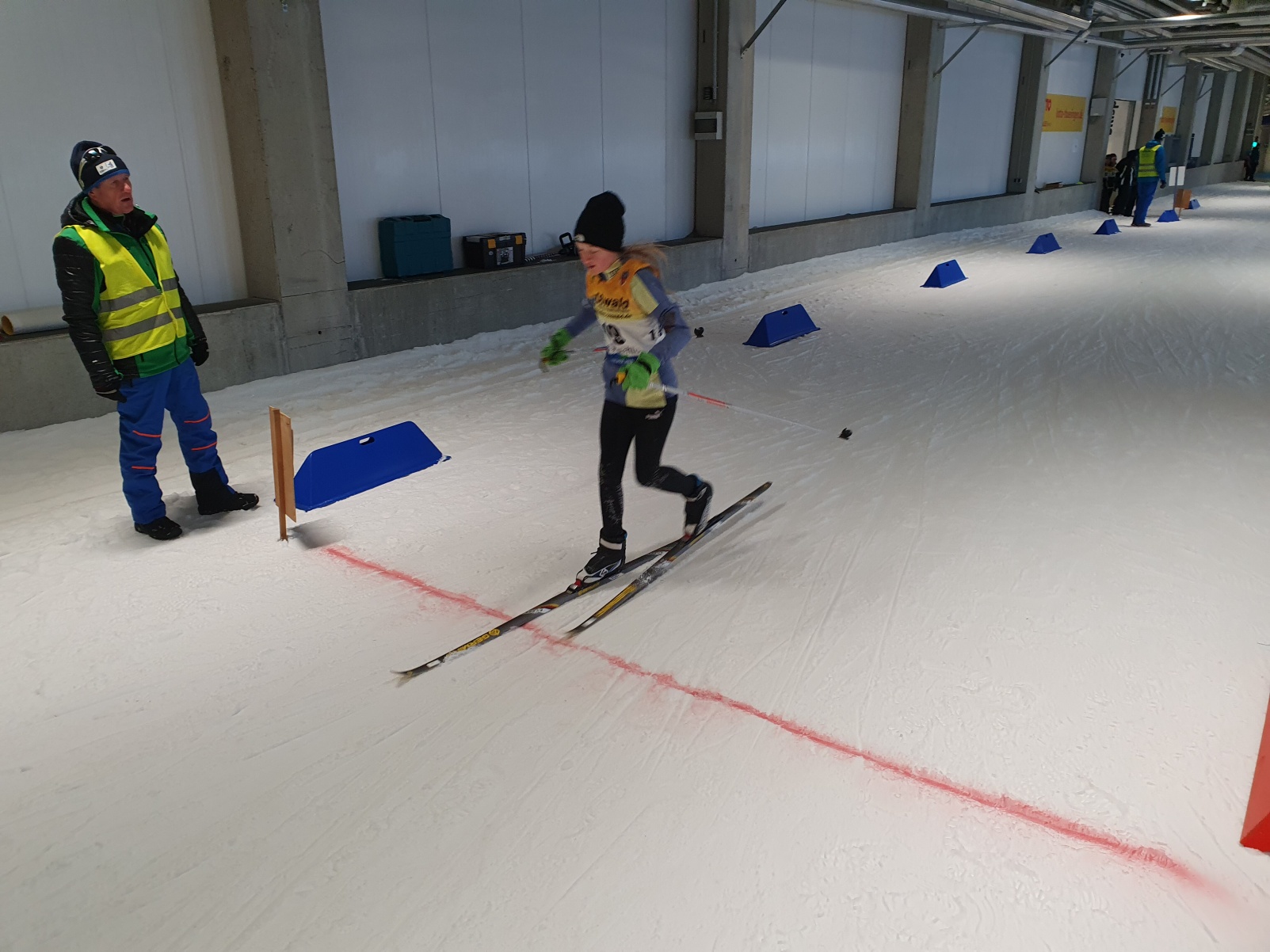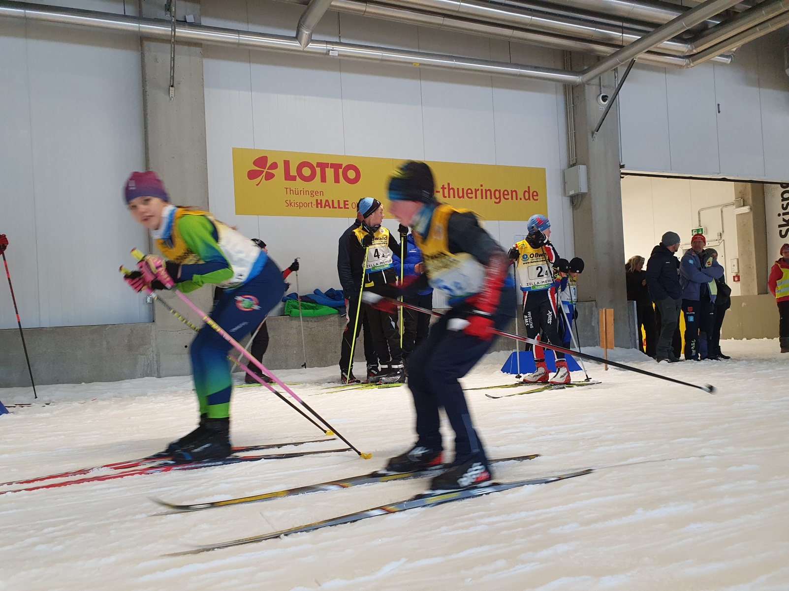 Das Sportschuljahr beginnt alljährlich im Schnee. Und, als hätte Petrus gewusst, dass Skilanglauf stattfindet, so war auch Schnee und blauer Himmel vorbestellt. Schade nur, dass die möglichen Strecken schon für die internationalen Profis bereitet wurden und somit alles in die Skihalle verlegt wurde. Mit dem Landesfinale im Skilanglauf werden in den Wettkampfklassen IV und V die Finalisten für das Bundesfinale in Schonach (Schwarzwald) ermittelt. Zwei Disziplindurchläufe sind dafür zu bewältigen. Einerseits gilt es in einem Einzelrennen gegen die Uhr und alle Konkurrenten anzutreten und dabei diverse Hindernisse und Technikelemente schnellstmöglich zu meistern. Andererseits heißt es, noch genug Energie im Tank zu haben, um in einer anschließenden Teamstaffel aus zwei Jungen und zwei Mädchen nochmals Vollgas geben zu können.