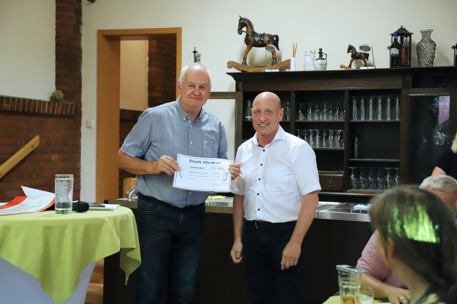 Vom 12. bis 17. August 2024 wurde das 39te Internationale Schmiedesymposium im Tobiashammer durchgeführt. Das Thema entsprach dem Stadtjubiläum – „1300 Jahre Ohrdruf“ – und erbrachte im Vorfeld die Idee des Schüler-Teams: Das müssen Bonifatius und seine Mönche werden. In Bezug auf die Fisch-Legende schwebt dieser über ihnen und wurde damit Namensgeber der Skulptur.