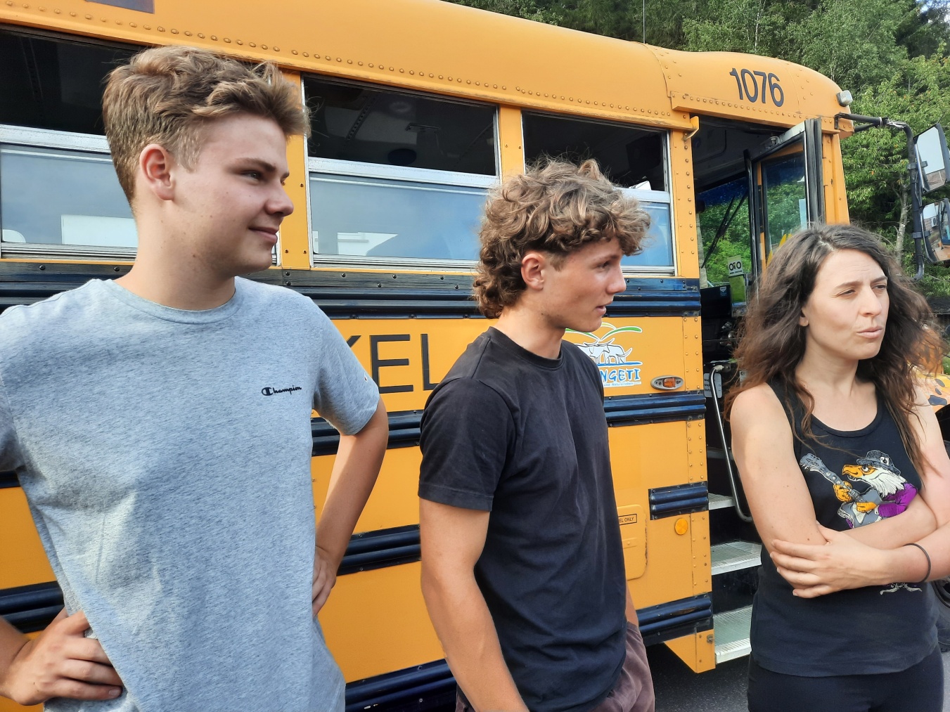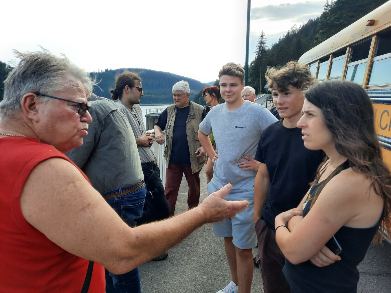Mittwoch 14.8. – Ausflug des Symposiums nach dem Schmiedetag der Künstler mit dem gelben amerikanischen Schulbus der Thüringeti zur Ohratalsperre; unsere Schüler helfen beim Dolmetschen ins Englische für die spanische Schmiedin