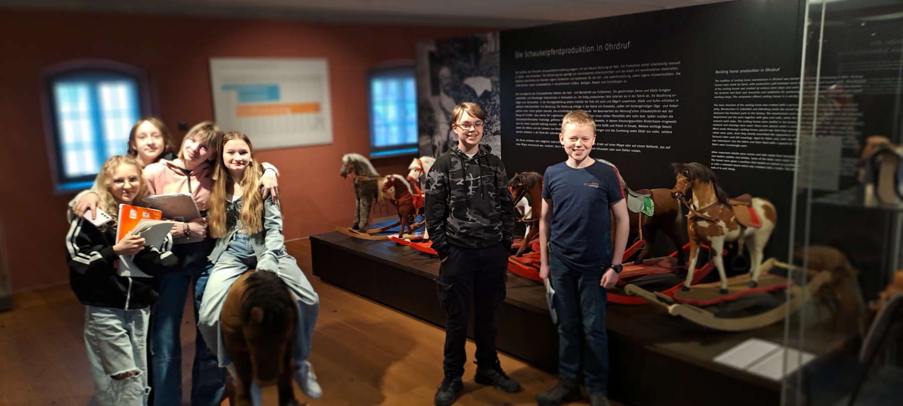 Im KUBUS MAGICUS vertieften sie dieses Wissen in einer digitalen 360°-rundum-Präsentation zur Stadtgeschichte. Mit ein paar weiteren Informationen zur wirtschaftlichen Entwicklung durch Herrn Cramer begann die selbständige Suche nach Fakten in den Ausstellungsräumen des Museums, es begann die Suche nach den Ohrdrufer Erfolgsgeschichten vom Schaukelpferd zum Bauhausstuhl zum Beispiel mit der Firma CEBASO, die in den 1920er Jahren Ohrdrufs größter Spielwarenhersteller war.