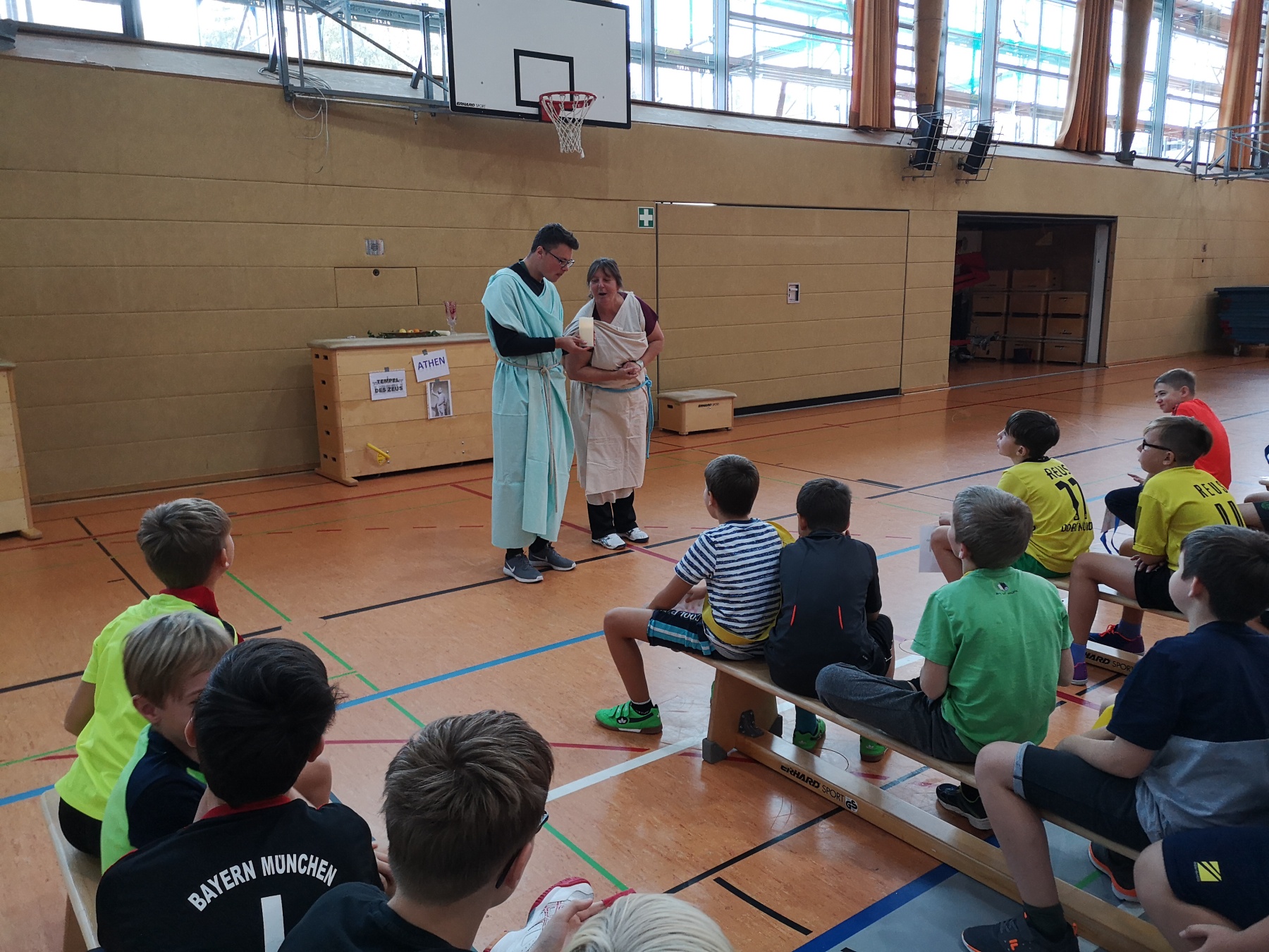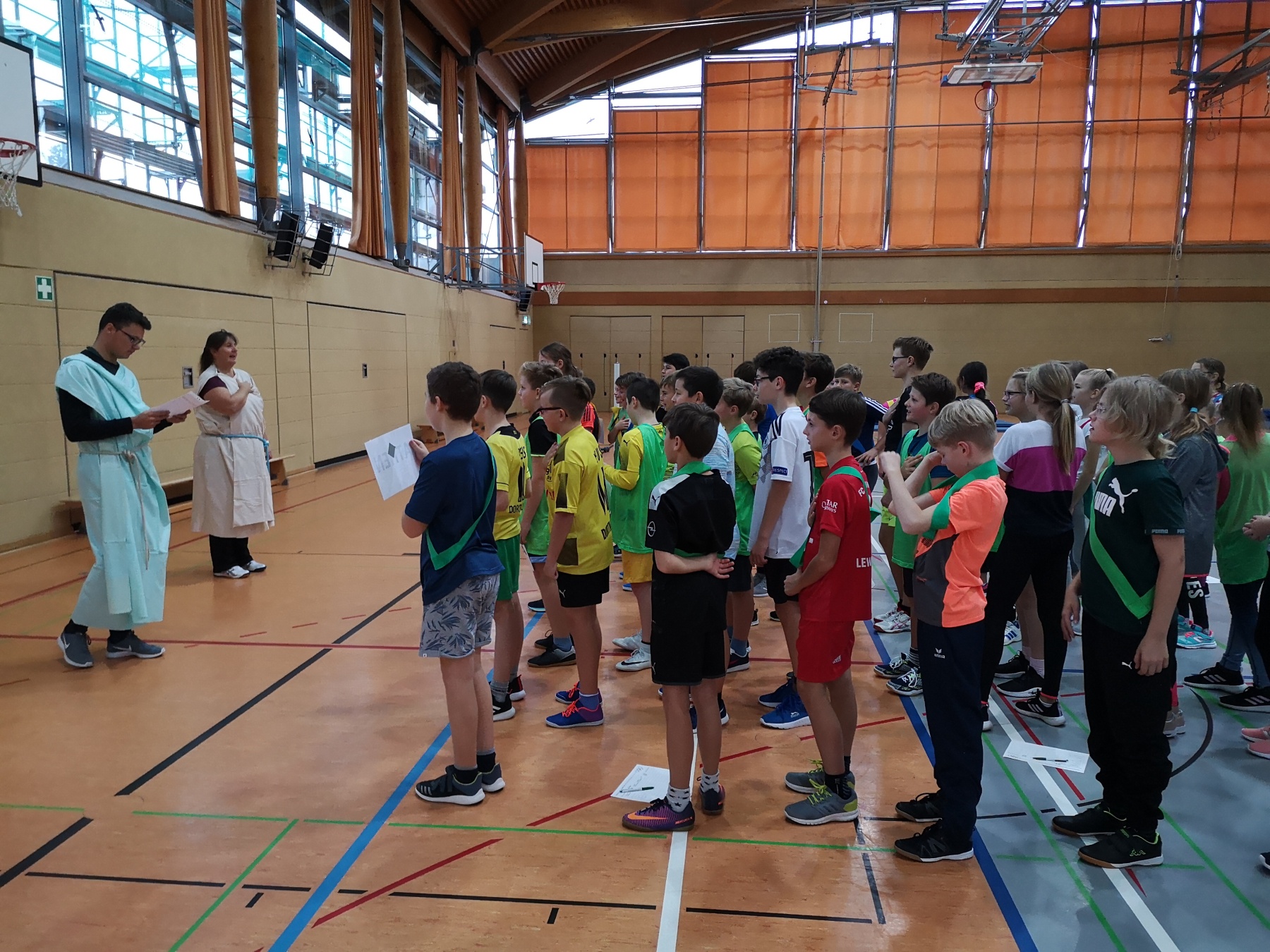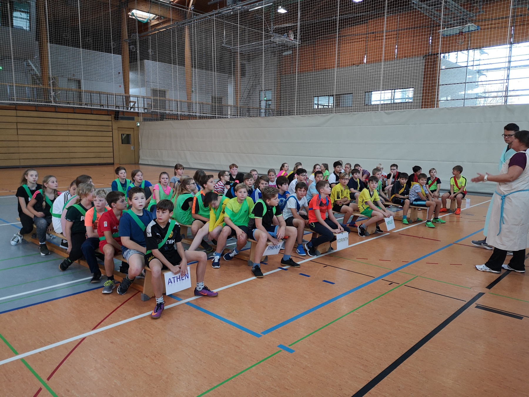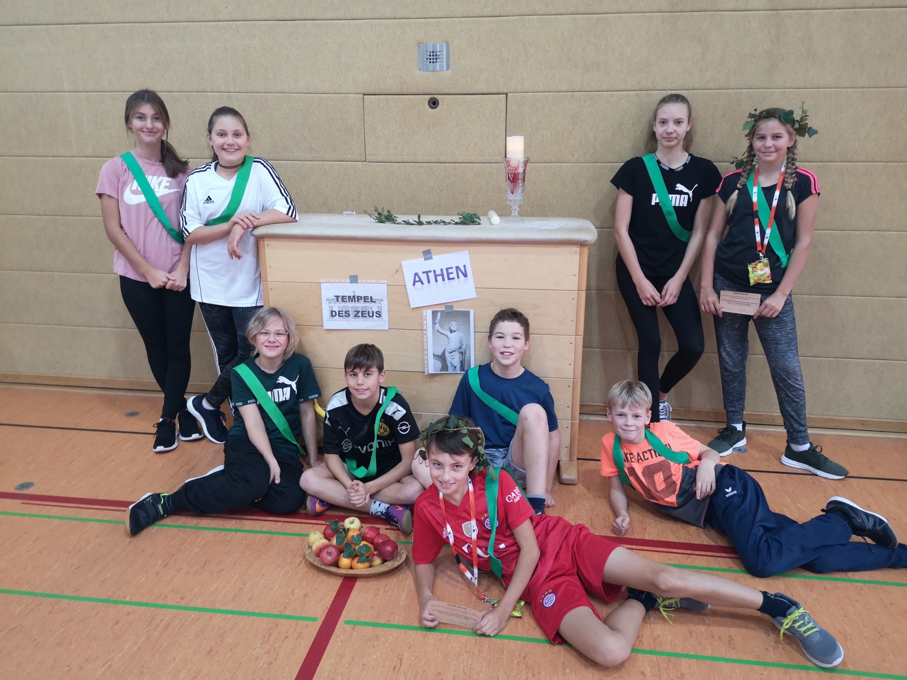Am Freitag, 15.11.2019, fand das erste Mal unser Projekttag zum Thema „Antike Olympische Spiele“ am Gymnasium Gleichense statt. Als fächerübergreifendes Angebot organisierten die Fachschaften Sport und Geschichte in der Goldberghalle für alle SchülerInnen der Klassenstufe 6 einen spannenden und abwechslungsreichen Wettkampftag. Zudem erlebten die Kinder hautnah den Ablauf der Antiken Olympischen Spiele und konnten so ihr Wissen aus dem Geschichtsunterricht vertiefen.