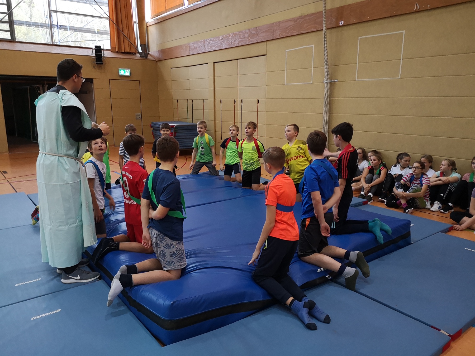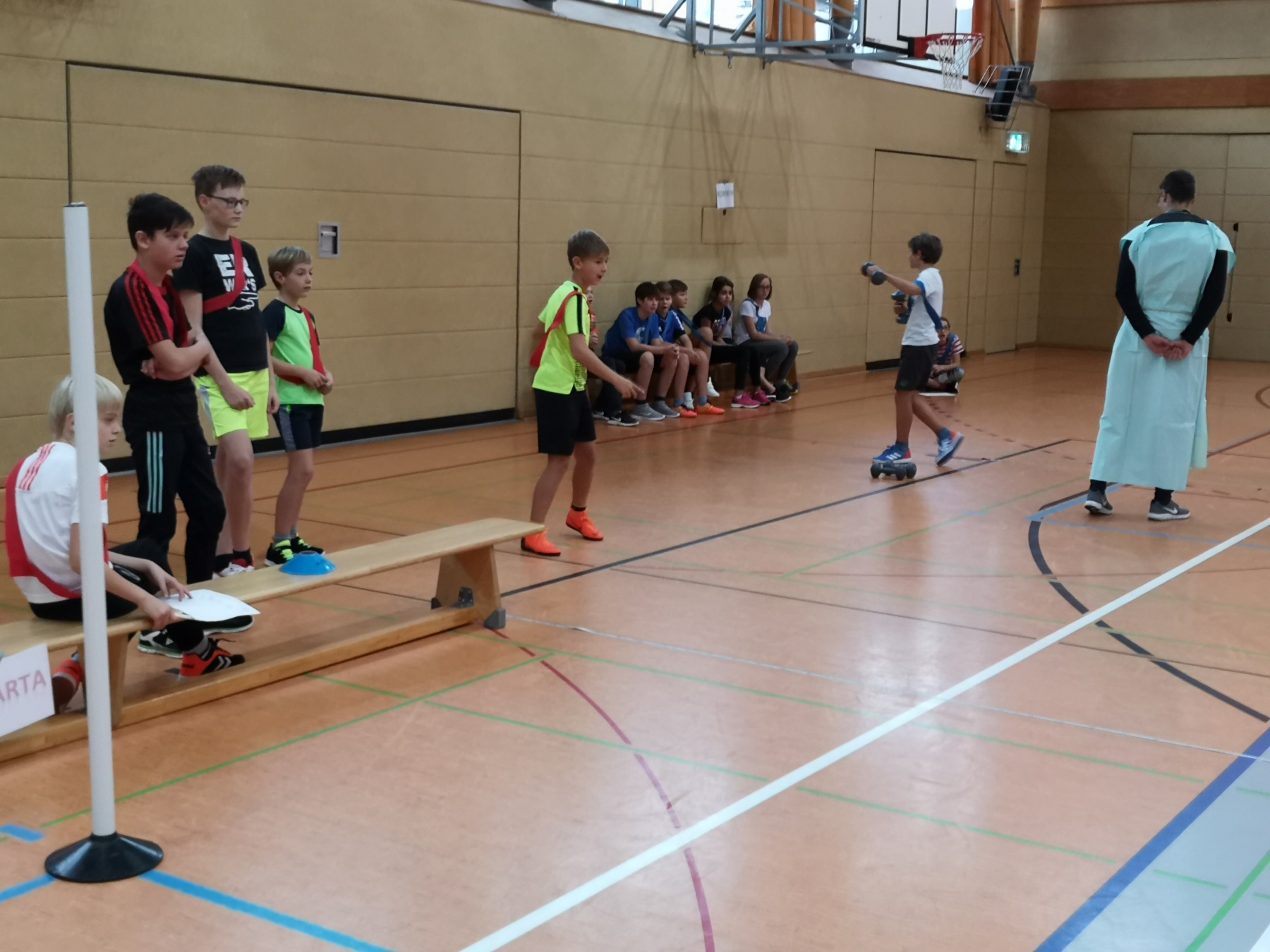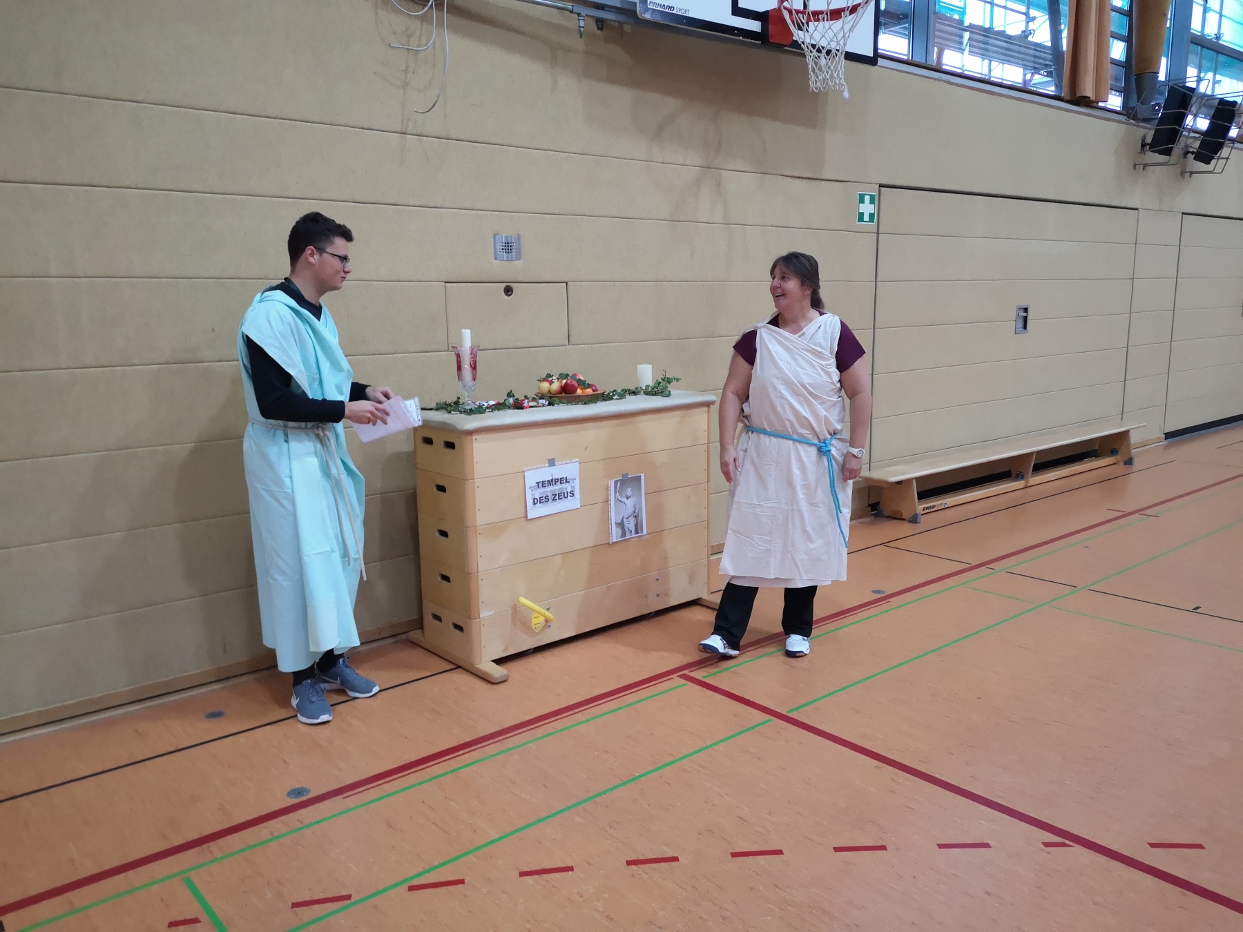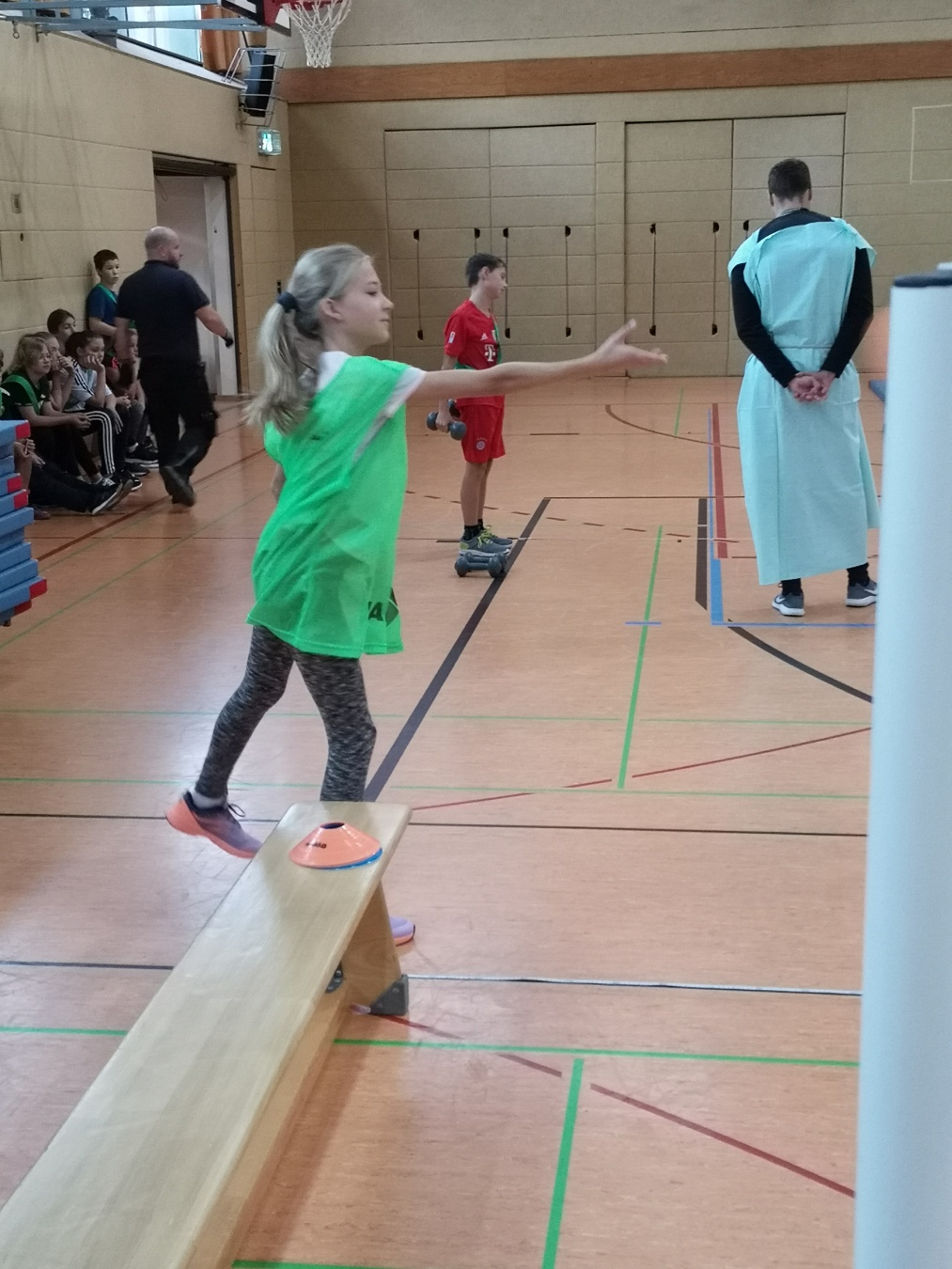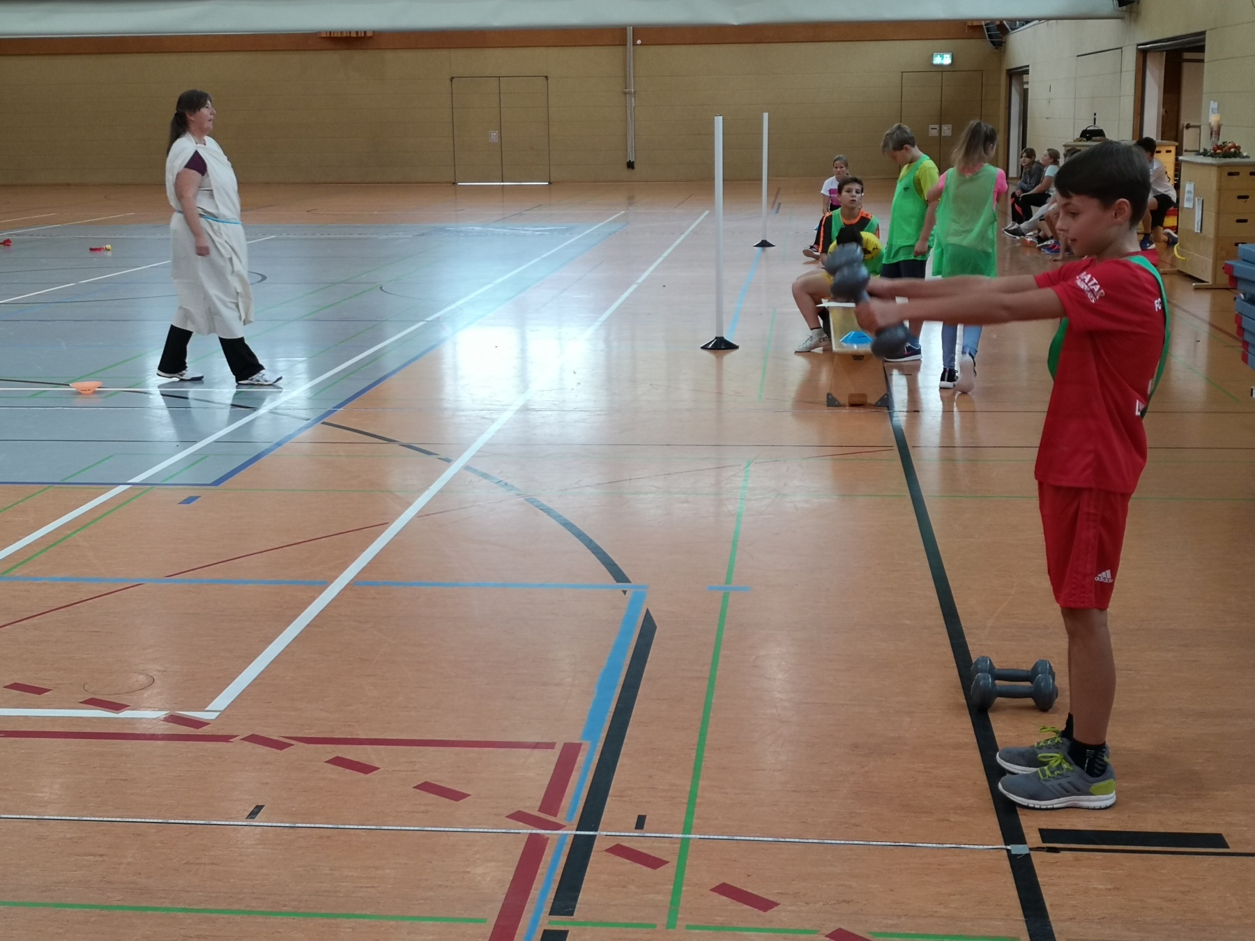 Am Freitag, 15.11.2019, fand das erste Mal unser Projekttag zum Thema „Antike Olympische Spiele“ am Gymnasium Gleichense statt. Als fächerübergreifendes Angebot organisierten die Fachschaften Sport und Geschichte in der Goldberghalle für alle SchülerInnen der Klassenstufe 6 einen spannenden und abwechslungsreichen Wettkampftag. Zudem erlebten die Kinder hautnah den Ablauf der Antiken Olympischen Spiele und konnten so ihr Wissen aus dem Geschichtsunterricht vertiefen.