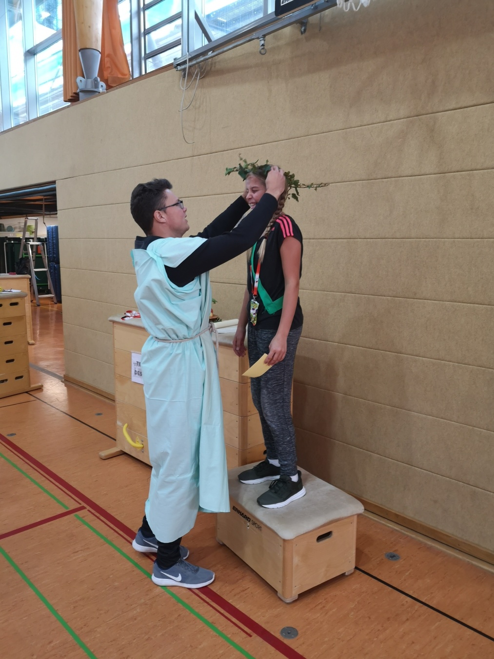 Das Ende der Spiele bildete die feierliche Siegerehrung. Es wurden die zwei besten EinzelathletInnen Tim Kühn und Laine John ausgezeichnet und mit Siegeskranz, Siegerpreis und viel Applaus geehrt. Im Wettkampf der Teams gewann die Polis Athen unsere Olympischen Spiele 2019.