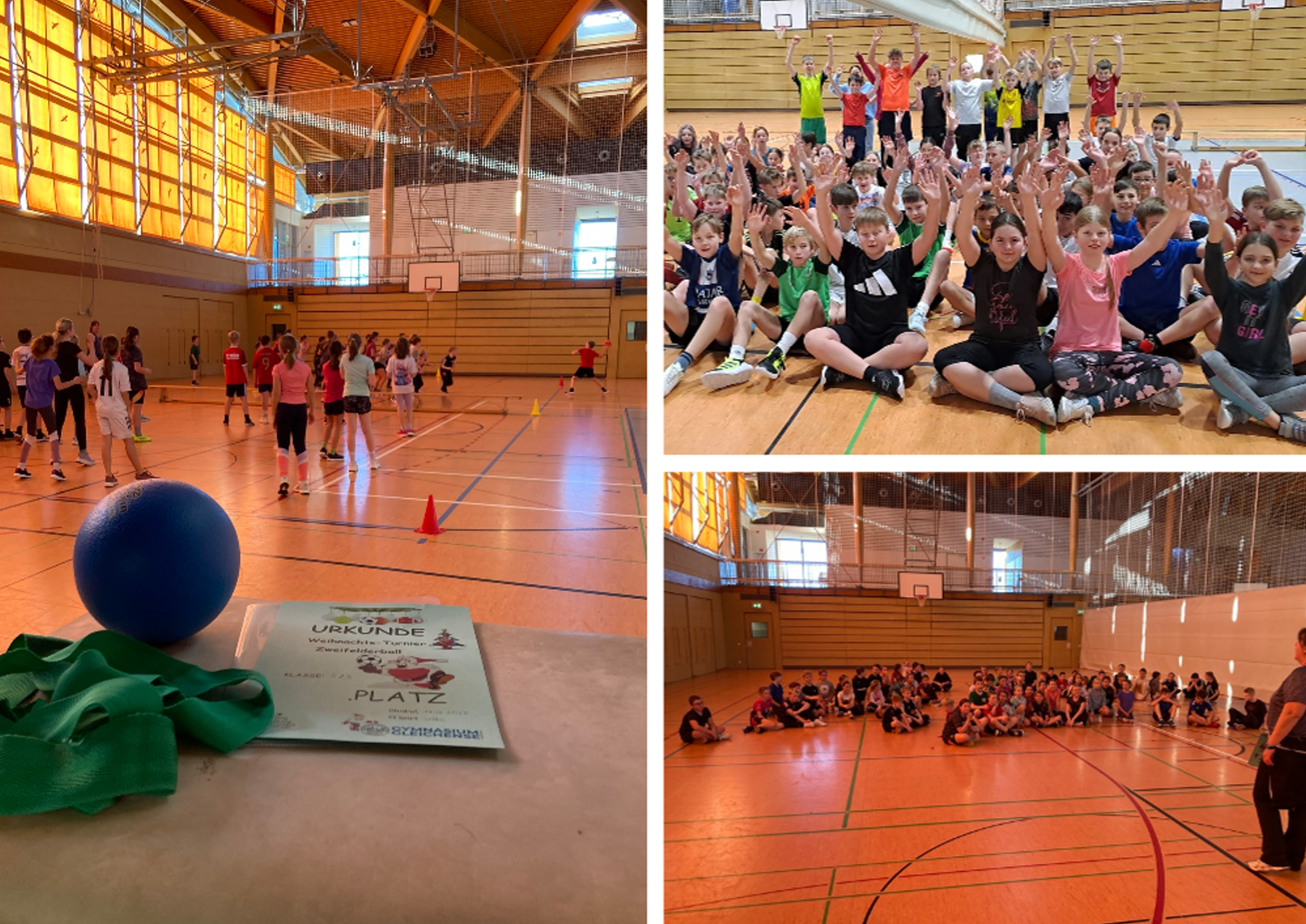 Am Mittwoch, den 17.12.2025, fand in unserer Goldberhalle das traditionelle Weihnachtsturnier im Zweifelderball für die Klassen 5 und 6 statt. In jeder Jahrgangsstufe traten die drei Klassen in einer Hin- und Rückrunde gegeneinander an und sorgten für spannende und umkämpfte aber auch faire Spiele. Mit viel Einsatz, Teamgeist und sportlichem Ehrgeiz wurde um jeden „Treffer“ gekämpft.