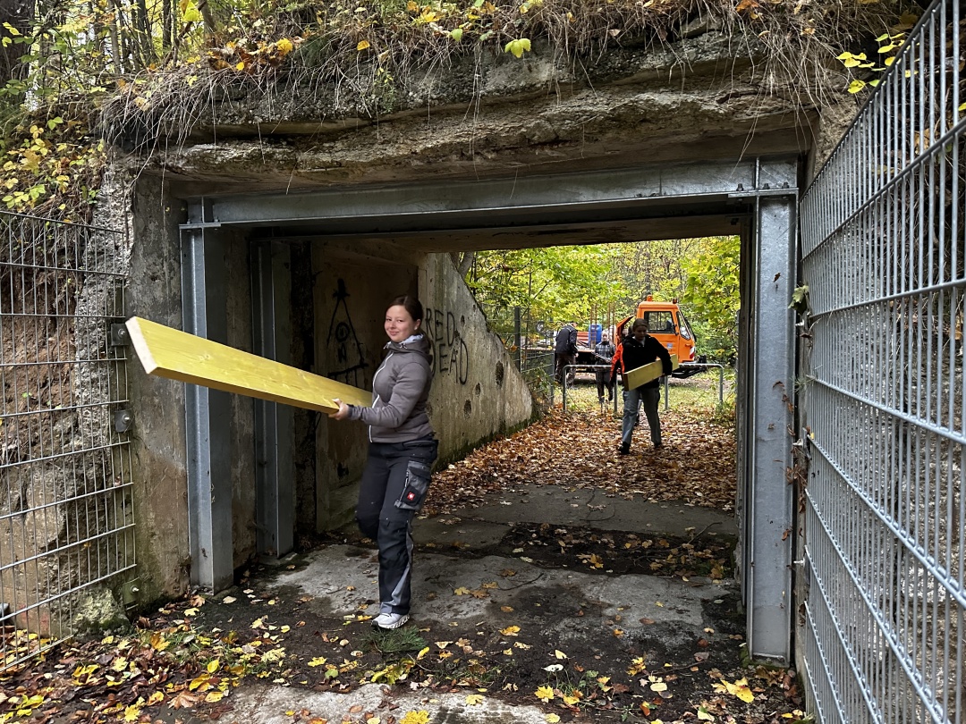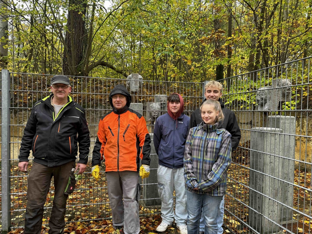 Am Montag, den 20. Oktober 2025, waren Schülerinnen und Schüler der AG „Schule ohne Rassismus – Schule mit Courage“ des Gymnasiums Gleichense gemeinsam mit dem Bauhof der Stadt Ohrdruf aktiv im Einsatz. Auf dem Gelände der ehemaligen Munitionsanstalt (MUNA) Ohrdruf, einem historischen Ort, an dem während des Zweiten Weltkriegs Häftlinge des KZ-Außenlagers SIII Zwangsarbeit leisten mussten, errichteten sie eine Figurengruppe in Erinnerung an die Opfer.