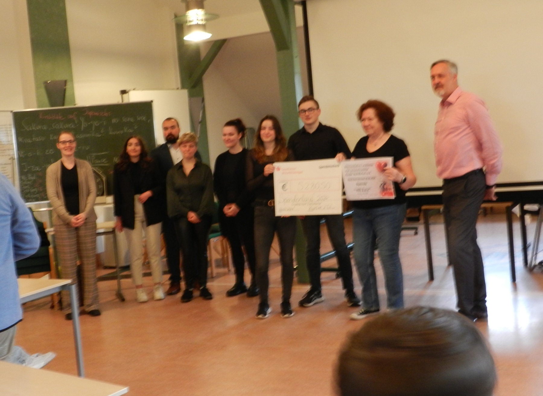 Die Veranstaltung endete mit einem herzlichen Applaus und einem Gruppenfoto aller Organisatoren. Die Schulgemeinschaft des Gymnasiums Gleichense hat einmal mehr bewiesen, wie stark der Zusammenhalt ist und wie viel man durch gemeinsames Engagement erreichen kann. Die Klassenstufe 11 dankt deshalb allen Beteiligten, Unterstützern und Sponsoren, die diese hohe Spendensumme ermöglicht haben! Besonders möchten wir uns auch bedanken bei: der Kreissparkasse Gotha mit ihren Auszubildenden, Frau Dreißig vom Rewe Ohrdruf, Gessert Reisen Finsterbergen, Bäckerei Protzmann Finsterbergen und Hanf Car Tuning in Ohrdruf.