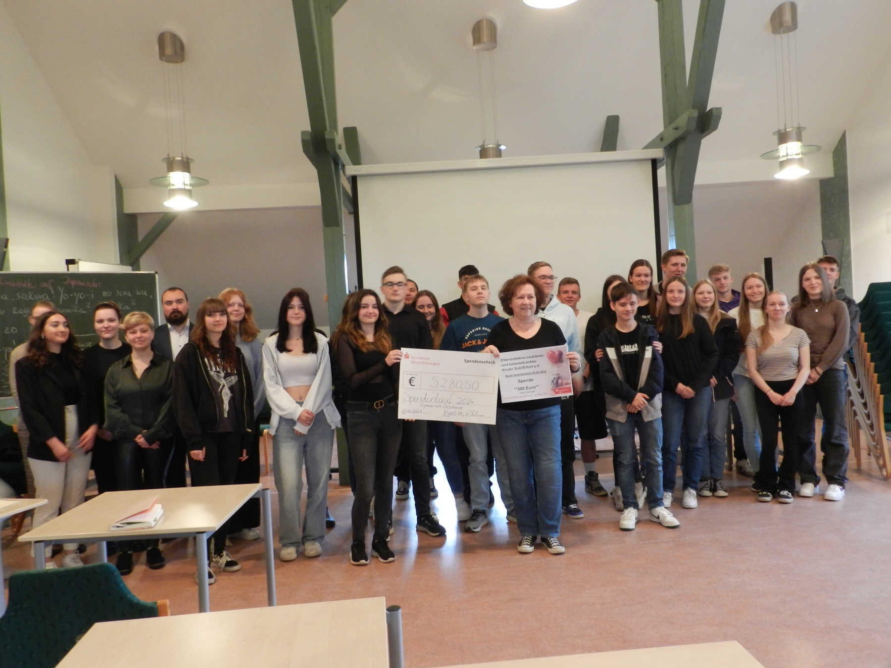 Am 22. Mai 2024 fand in der Aula des Gymnasiums „Gleichense“ die feierliche Übergabe der Spendengelder des diesjährigen, von der Klassenstufe 11 organisierten, Spendenlaufes statt. Die Veranstaltung, welche von der Schulgemeinschaft mit großer Vorfreude erwartet wurde, war ein beeindruckender Erfolg und zeigte das enorme Engagement der Schülerinnen und Schüler, die beachtliche Hilfsbereitschaft aller Sponsoren sowie die großzügige Unterstützung durch die Kreissparkasse Gotha.
