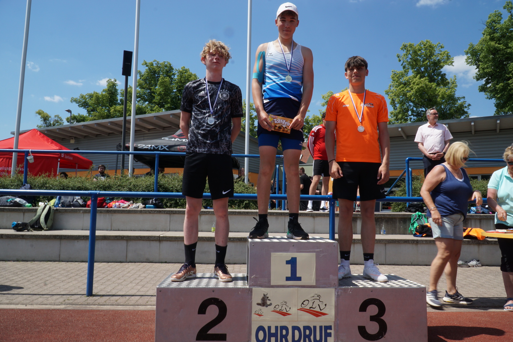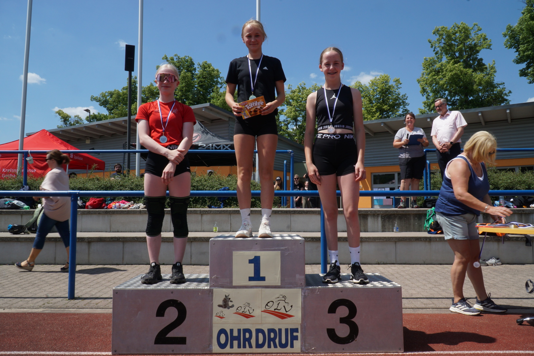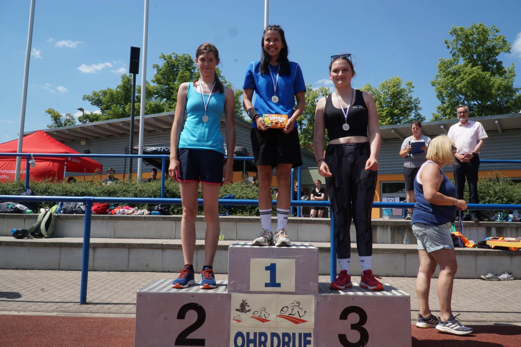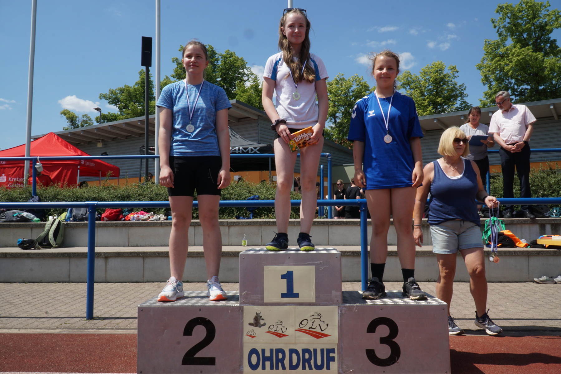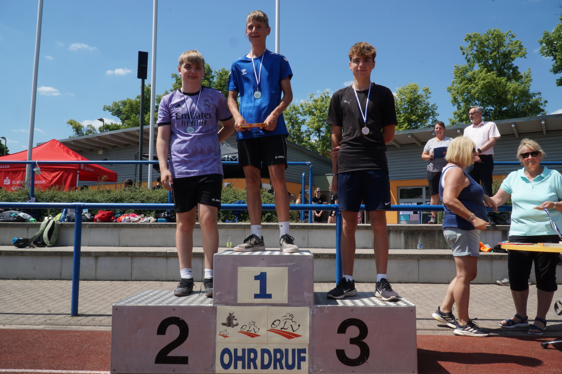 Bei strahlendem Sonnenschein veranstaltete das Gymnasium „Gleichense“ am 13. Juni 2023 das jährliche Sportfest in Ohrdruf. Unsere Sportler der Klassenstufen 5 – 10 konnten sich in den Disziplinen Ballwurf/Kugelstoßen, Sprint sowie Weitsprung messen und unter hervorragenden Bedingungen persönliche Bestleistungen erzielen. An den Dreikampf angeschlossen, bei dem die ersten drei Plätze aller Klassenstufen durch Medaillen und kleine Preise geehrt wurden, erfolgten die Pendelstaffeln. Der Förderverein stellte eine Fitnesstheke mit frischem Obst und Gemüse zur Verfügung, an der die Schüler nötige Vitamine sammeln konnten. Auch die Firma „Enjoy“ sorgte durch einen Imbiss für optimale Versorgung unserer Teilnehmer. Ein Teil der Einnahmen sowie der anschließende Spendenlauf, organisiert durch eine Seminarfachgruppe der 11. Klasse, gingen als Spende zu Gunsten des Bodelschwingh-Hofes ein.