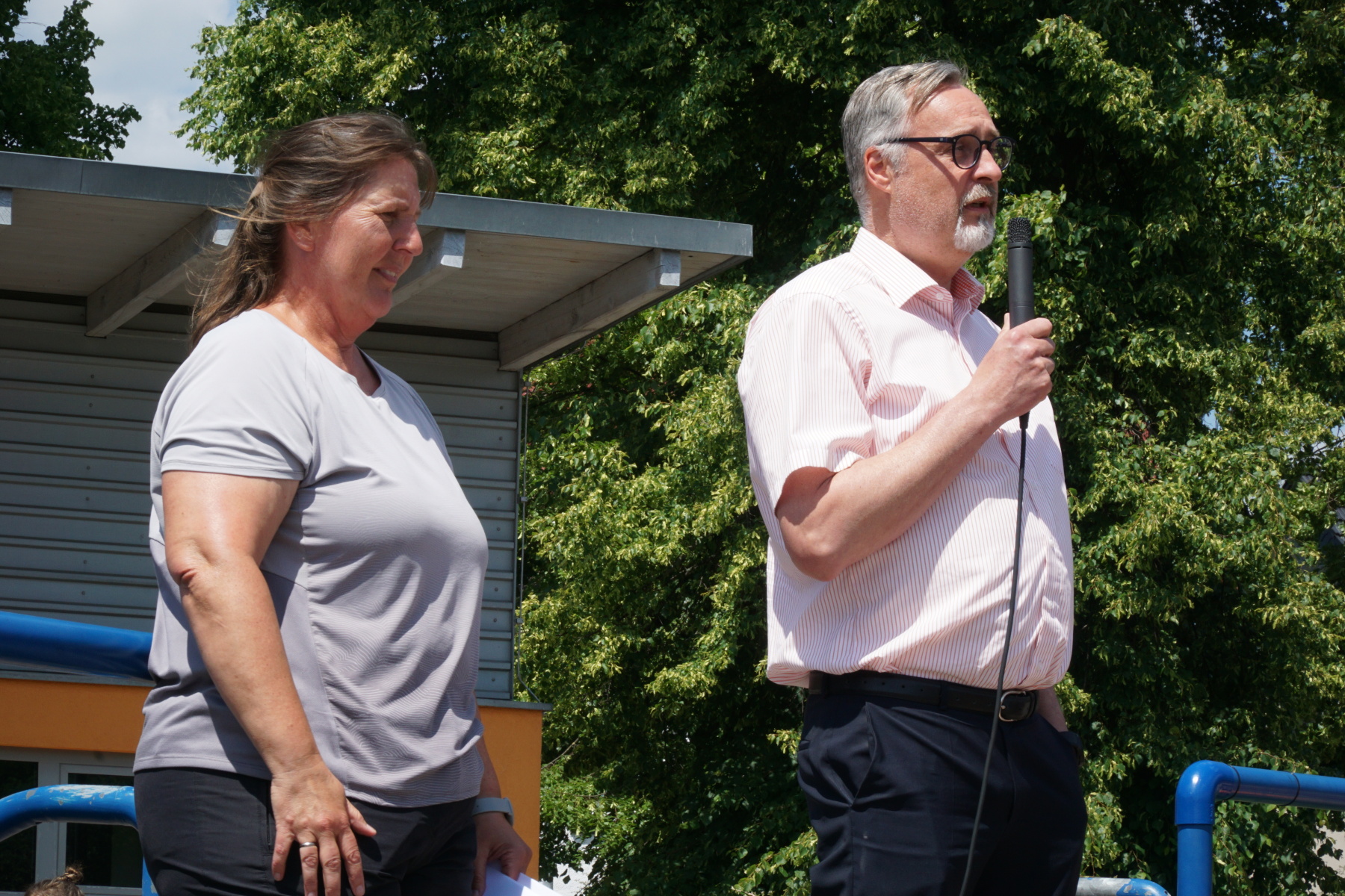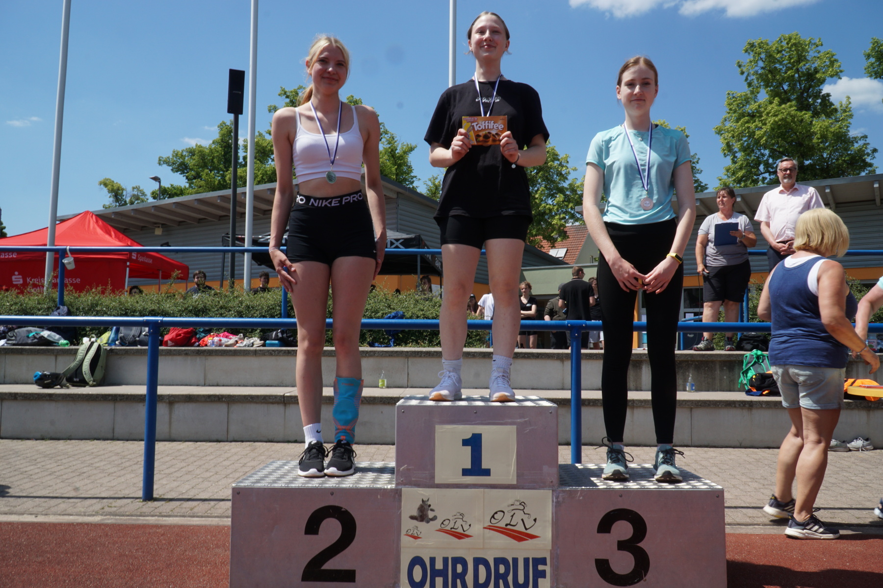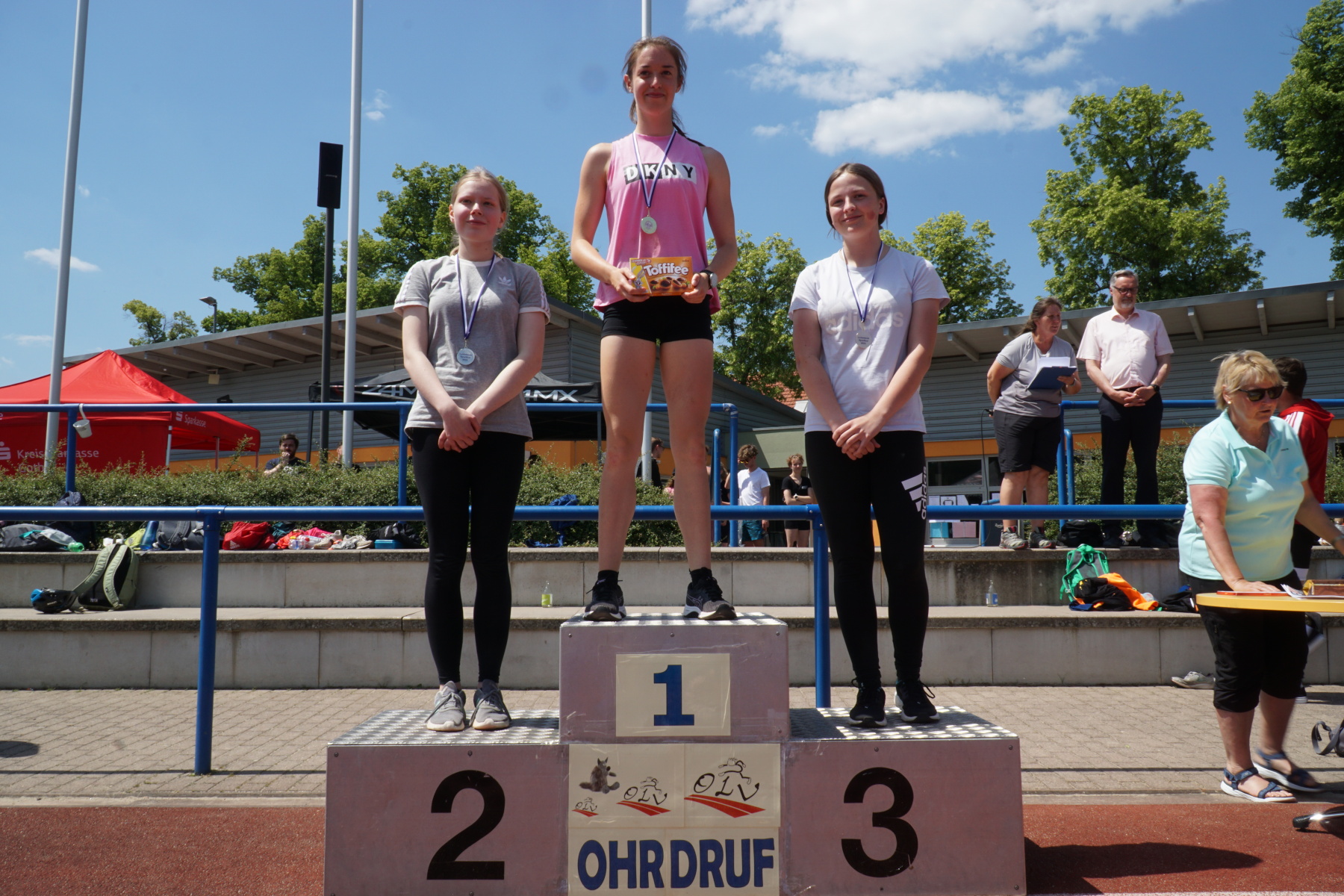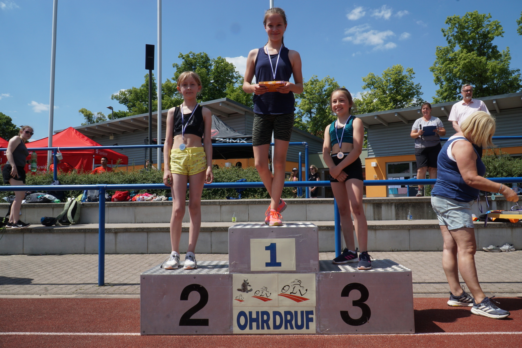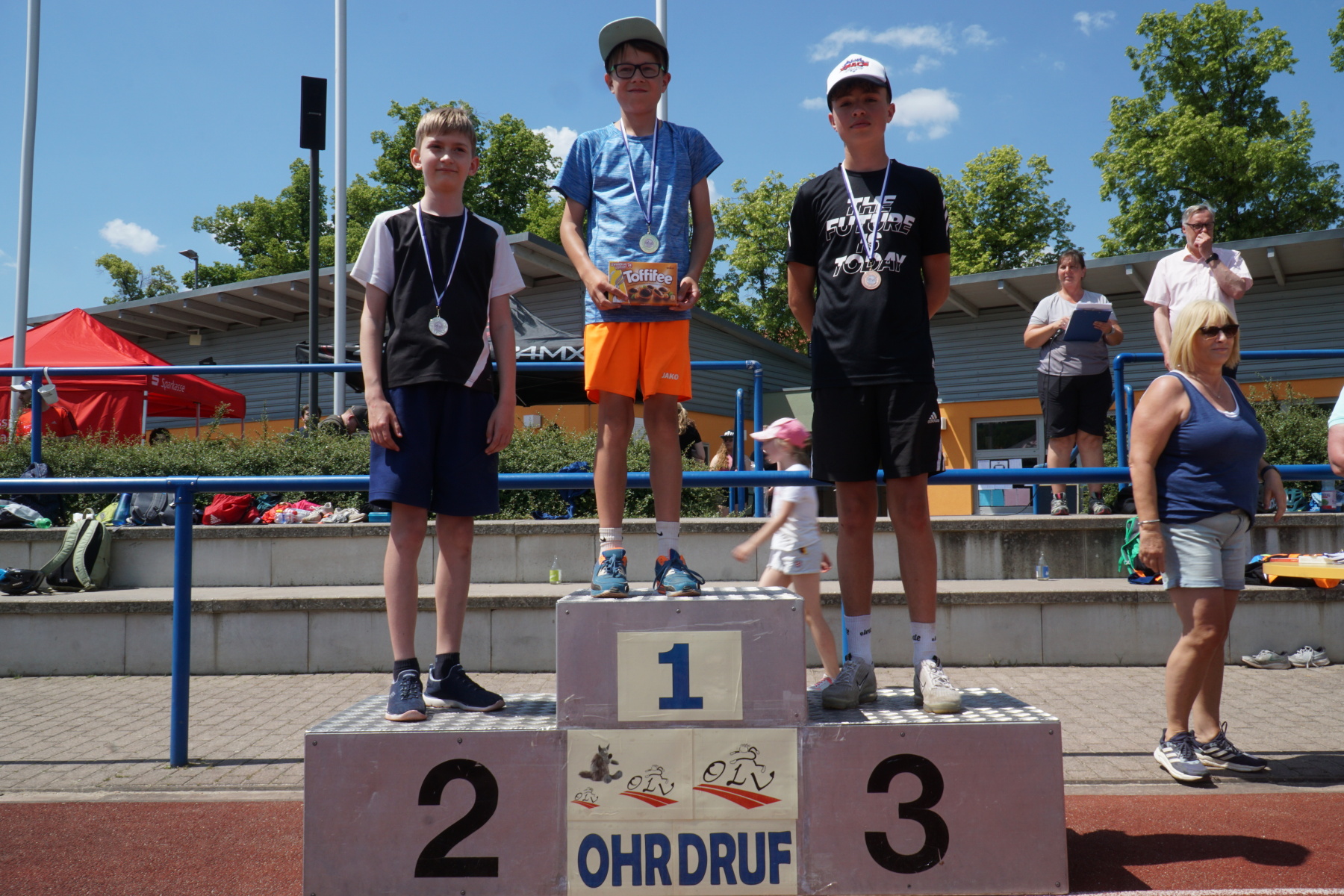 Bei strahlendem Sonnenschein veranstaltete das Gymnasium „Gleichense“ am 13. Juni 2023 das jährliche Sportfest in Ohrdruf. Unsere Sportler der Klassenstufen 5 – 10 konnten sich in den Disziplinen Ballwurf/Kugelstoßen, Sprint sowie Weitsprung messen und unter hervorragenden Bedingungen persönliche Bestleistungen erzielen. An den Dreikampf angeschlossen, bei dem die ersten drei Plätze aller Klassenstufen durch Medaillen und kleine Preise geehrt wurden, erfolgten die Pendelstaffeln. Der Förderverein stellte eine Fitnesstheke mit frischem Obst und Gemüse zur Verfügung, an der die Schüler nötige Vitamine sammeln konnten. Auch die Firma „Enjoy“ sorgte durch einen Imbiss für optimale Versorgung unserer Teilnehmer. Ein Teil der Einnahmen sowie der anschließende Spendenlauf, organisiert durch eine Seminarfachgruppe der 11. Klasse, gingen als Spende zu Gunsten des Bodelschwingh-Hofes ein.