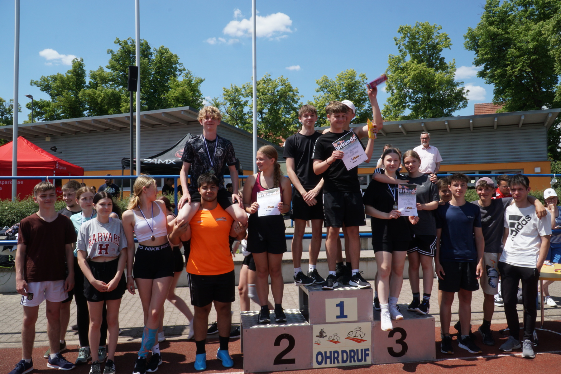 Wir freuen uns über ein gelungenes Sportfest mit zahlreichen glücklichen Gesichtern und bedanken uns bei der Fachschaft Sport, allen Lehrern sowie Helfern der Klassenstufe 11 für das Stellen des Wettkampfgerichtes sowie die Organisation des Tages! / Fidelia Hesse (11/24DM)