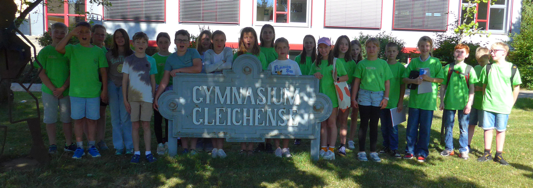 Vom Förderverein finanziert gab es wieder unsere Schul-T-Shirts – dieses Jahr in frischem Grün.