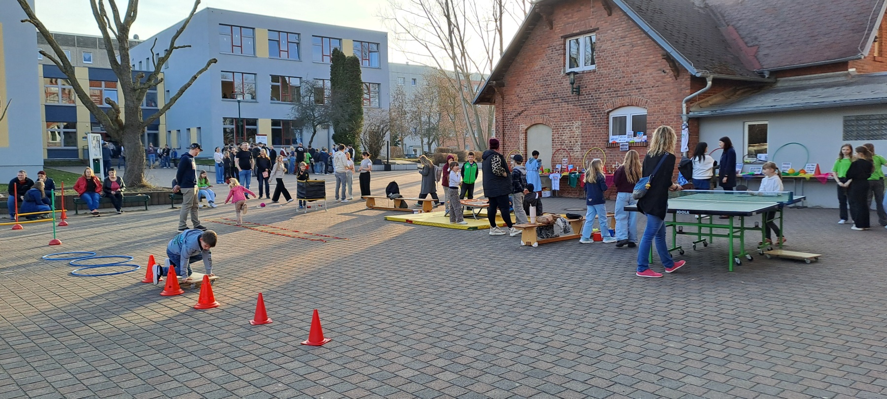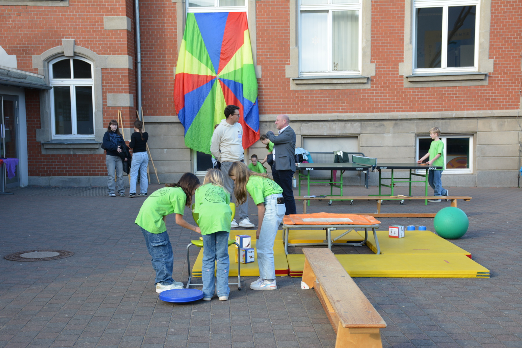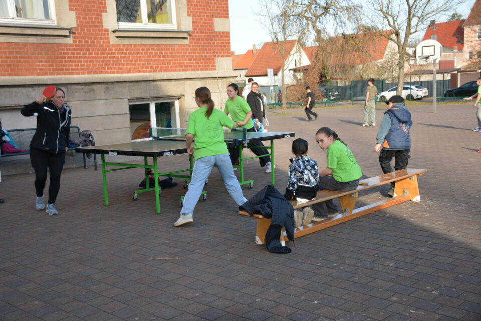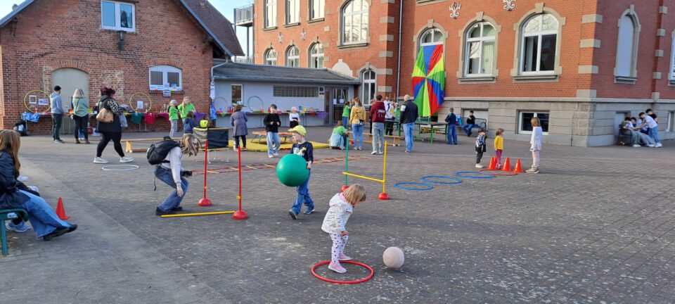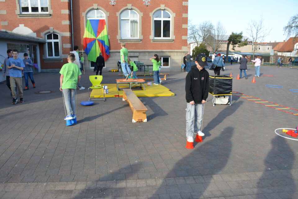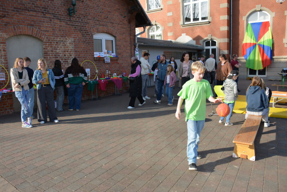 Dank des strahlend schönen Wetters konnten auch mehrere Aktionen im Freien stattfinden. Besonders die Bewegungs- und Spielangebote der Fachschaft Sport wurden von den jungen Besucherinnen und Besuchern begeistert angenommen. Auf dem Schulgelände konnten sich die Kinder ausprobieren, aktiv werden und dabei einen Eindruck vom sportlichen Angebot der Schule gewinnen.