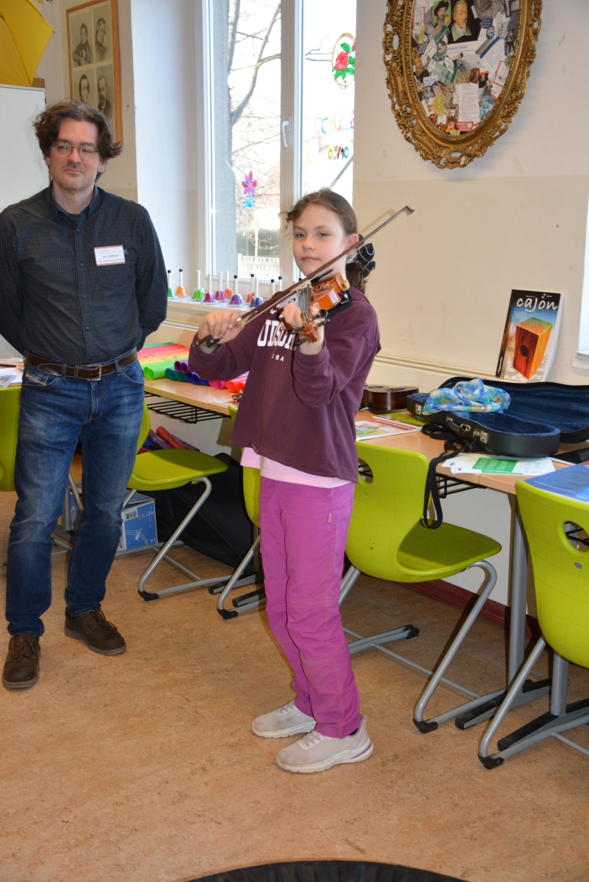 Die zentrale Begrüßung der Gäste fand in der Aula statt. Dort wurden die Besucher herzlich empfangen und erhielten einen ersten Einblick in das Schulleben. Für eine besonders festliche Atmosphäre sorgten musikalische Beiträge von Schülerinnen und Schülern der Klassenstufen 5 bis 10, die mit ihren Auftritten das Programm begleiteten und viel Applaus erhielten.