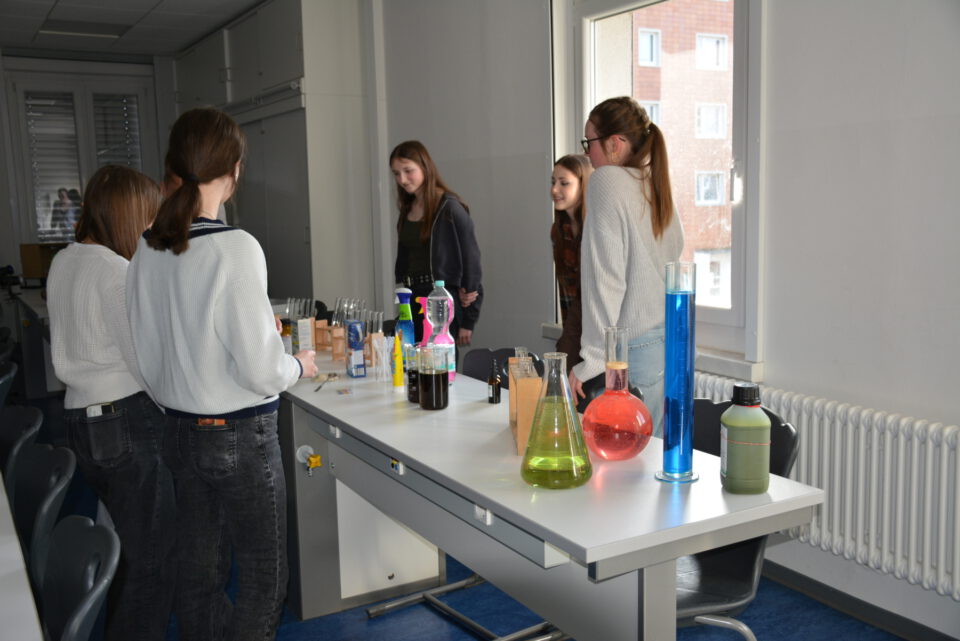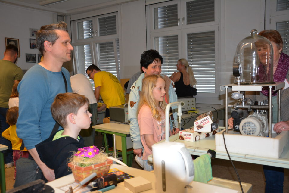 Im Anschluss präsentierten sich zahlreiche Fachbereiche in den Klassen- und Fachräumen. Schülerinnen und Schüler sowie Lehrkräfte stellten Projekte, Unterrichtsinhalte und Experimente vor und luden die Gäste zum Mitmachen ein. Viele Eltern nutzten die Gelegenheit, mit Lehrkräften ins Gespräch zu kommen und sich über das Profil sowie die vielfältigen Angebote der Schule zu informieren.