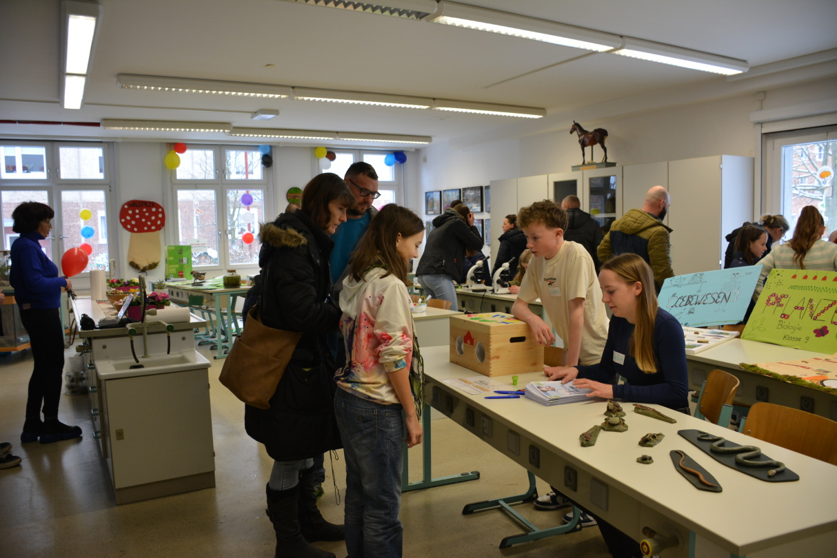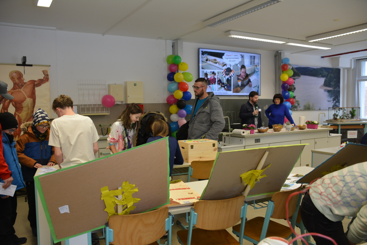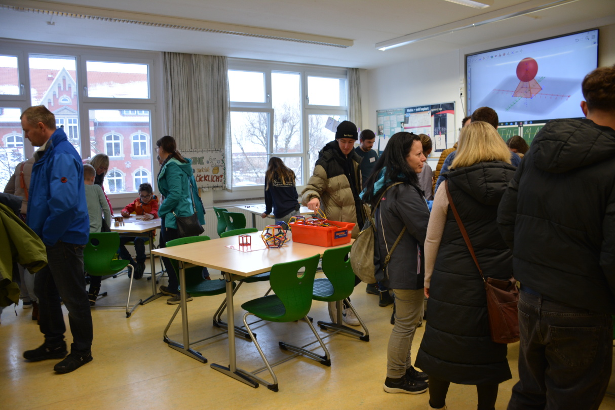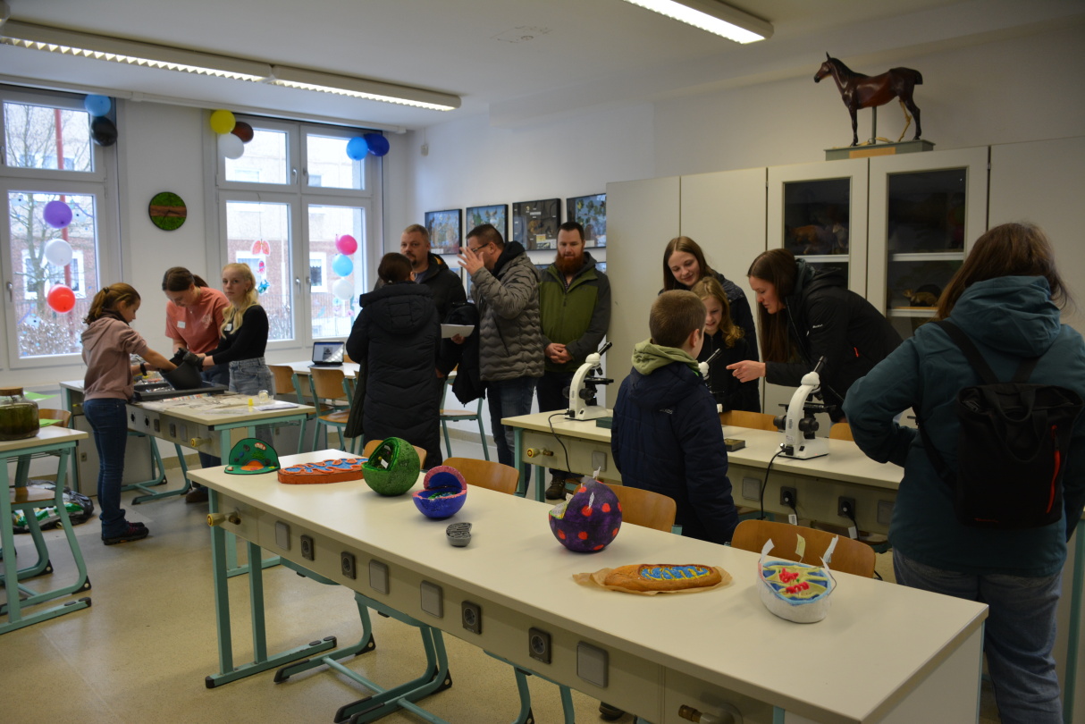 Bereits zu Beginn des Nachmittags füllten sich die Flure der Schule mit neugierigen Besuchern. Der Schulleiter, Herr Marschner, begrüßte die Gäste herzlich und gab einen Überblick über das Profil der Schule. Anschließend konnten die Besucher die modernen Unterrichtsräume, Fachlabore und Sporteinrichtungen erkunden. Besonders beeindruckten die liebevoll gestalteten Präsentationen der Schülerinnen und Schüler, die Einblicke in verschiedene Fachbereiche gaben.