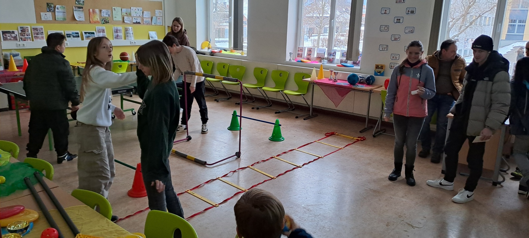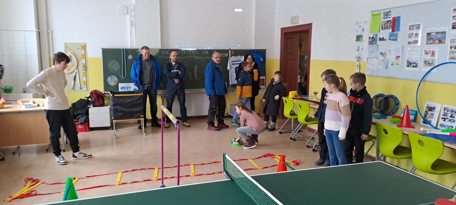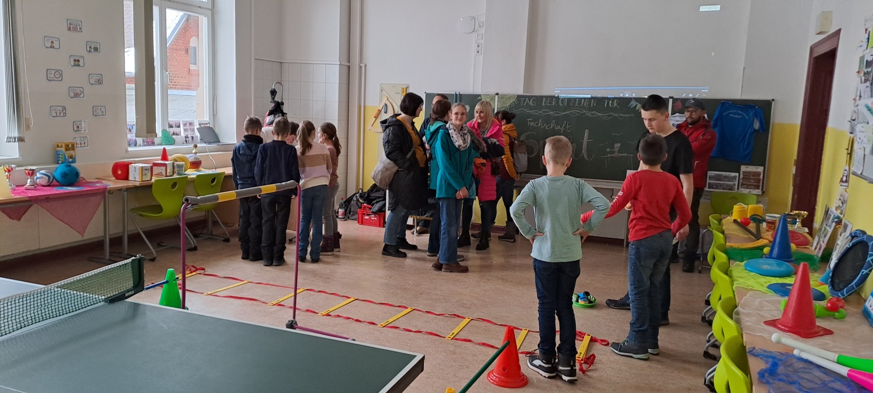 Bereits zu Beginn des Nachmittags füllten sich die Flure der Schule mit neugierigen Besuchern. Der Schulleiter, Herr Marschner, begrüßte die Gäste herzlich und gab einen Überblick über das Profil der Schule. Anschließend konnten die Besucher die modernen Unterrichtsräume, Fachlabore und Sporteinrichtungen erkunden. Besonders beeindruckten die liebevoll gestalteten Präsentationen der Schülerinnen und Schüler, die Einblicke in verschiedene Fachbereiche gaben.