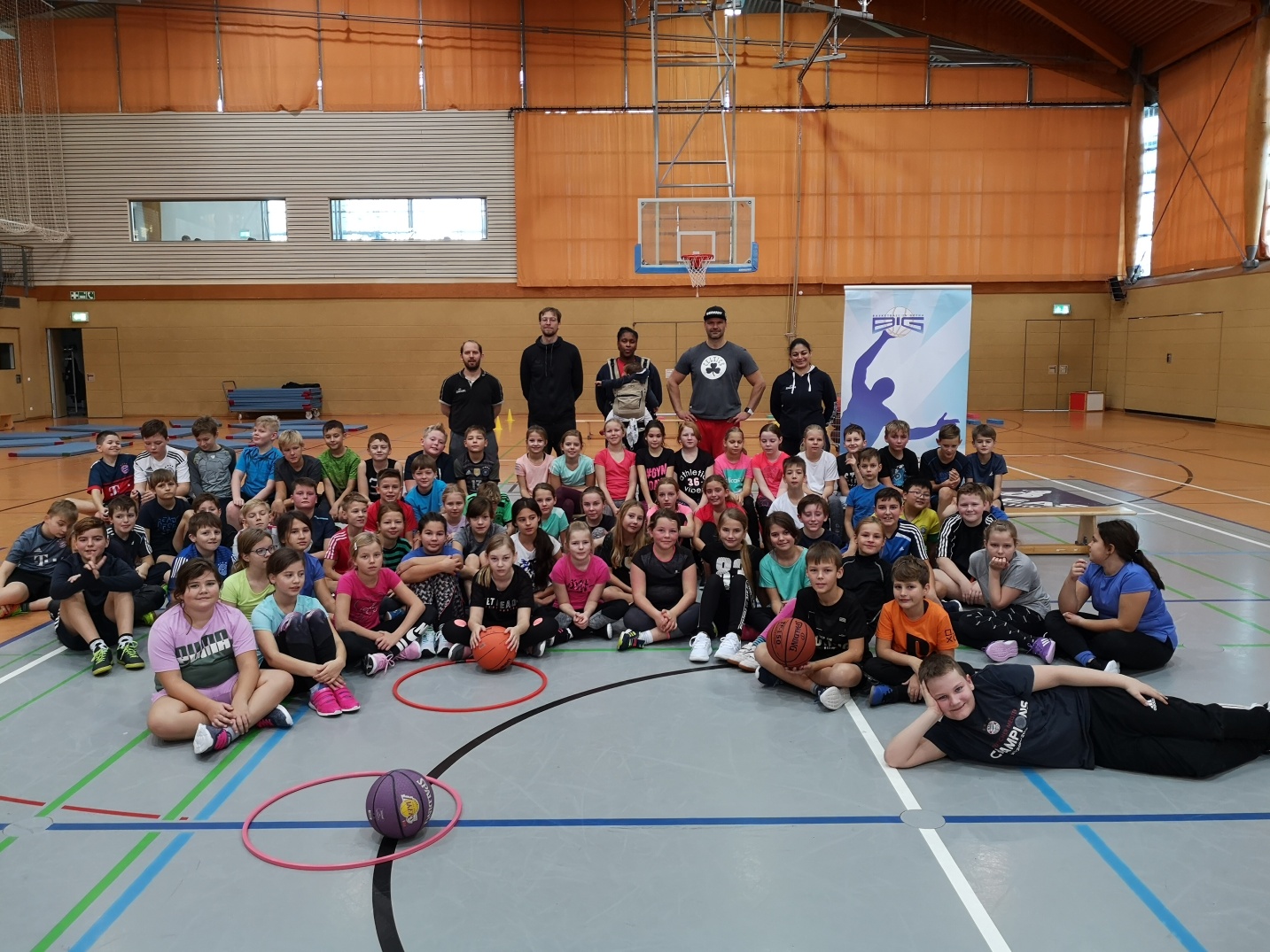 In 5 Gruppe eingeteilt wurde an 2 Stationen allgemeine Fitness angeboten, an einer Station unter Leitung der neuen BB-Trainerin aus Spanien Korbwürfe, ein BB-Quiz und natürlich wurde an einer Station Basketball gespielt.