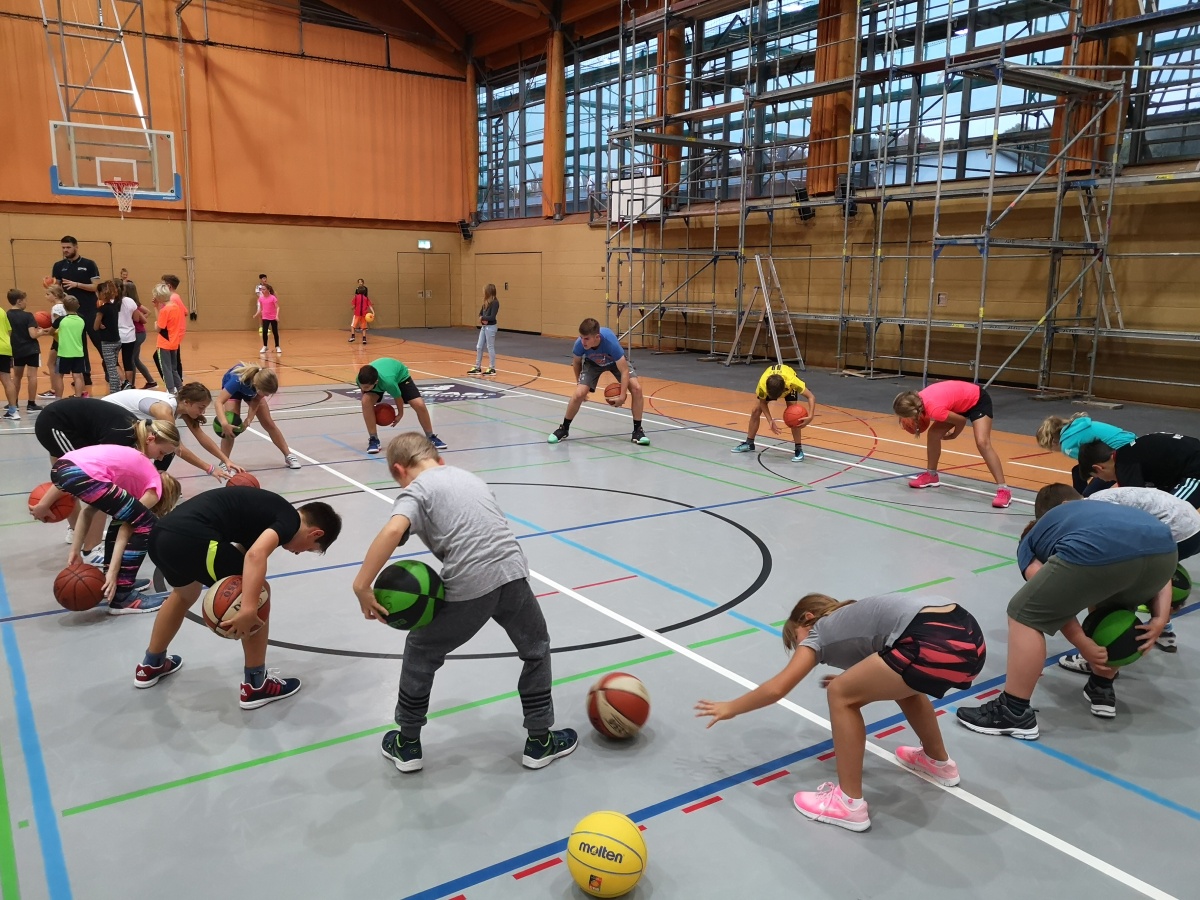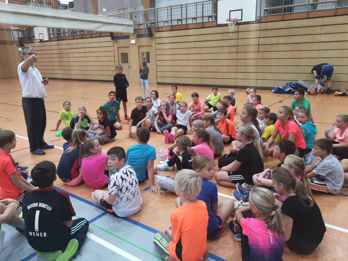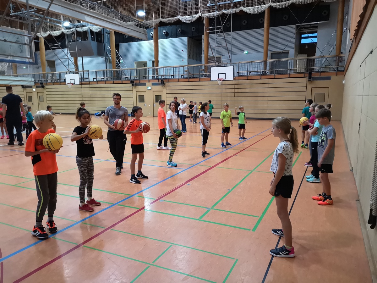 In 4 Gruppen geteilt wurde unter Anleitung von Eric Ballhandling geübt, mit Benjamin zugespielt, mit Andreas Körbe geworfen und mit Peter Basketball gespielt.