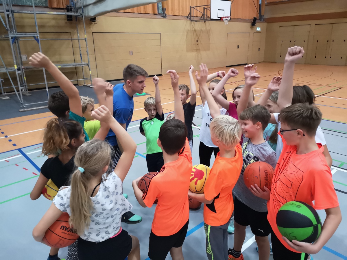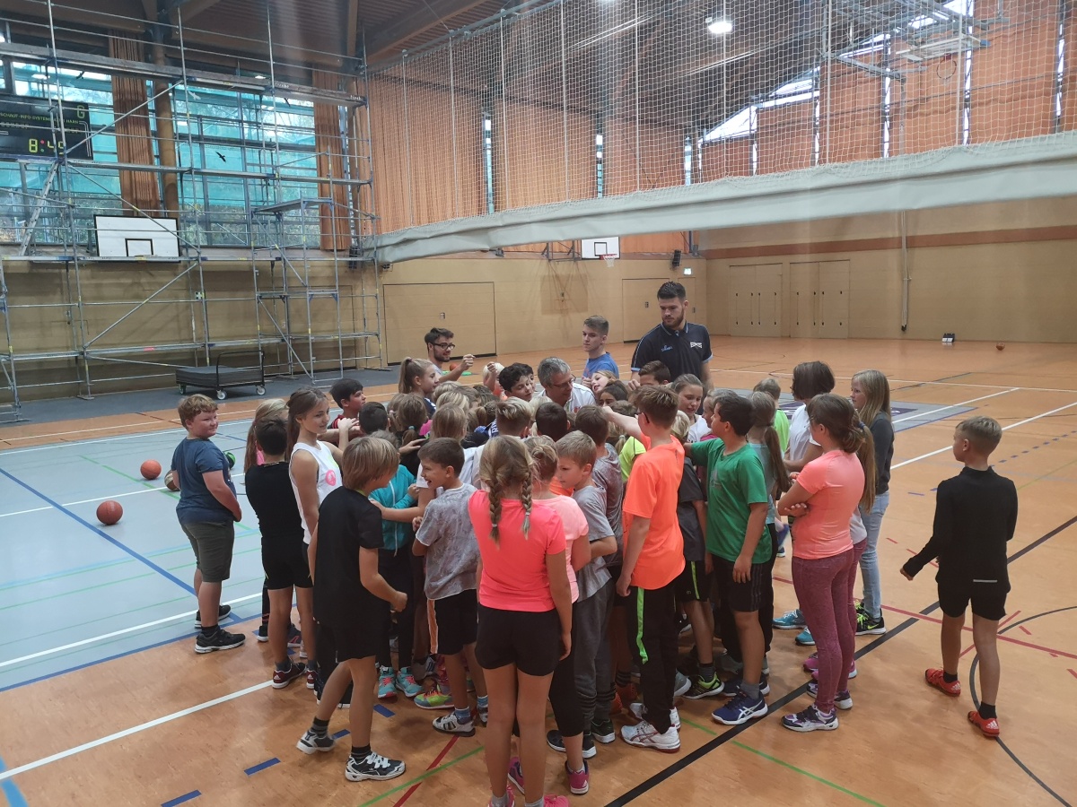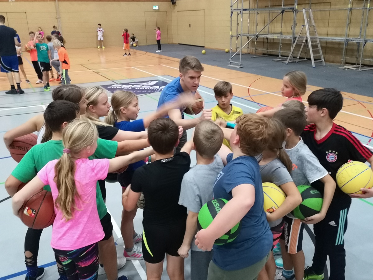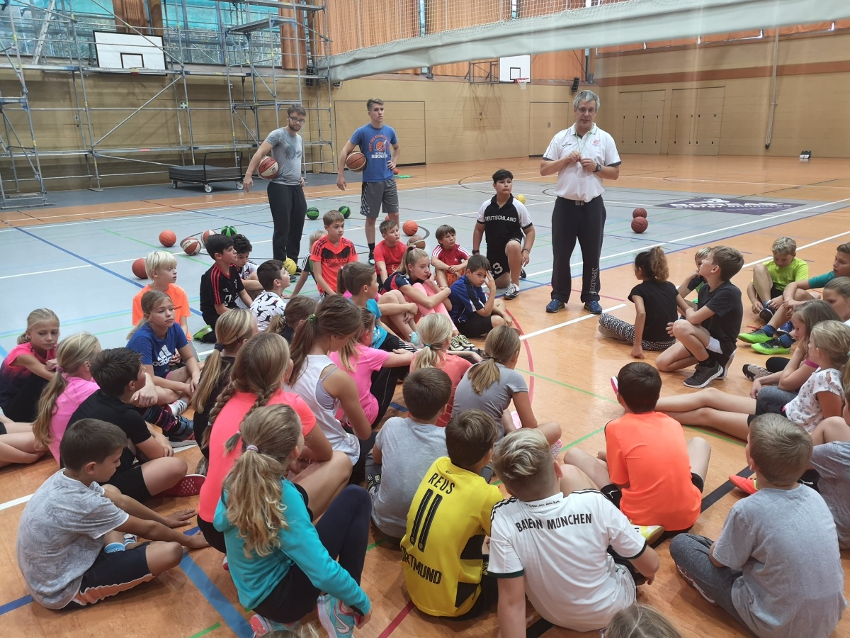 In 4 Gruppen geteilt wurde unter Anleitung von Eric Ballhandling geübt, mit Benjamin zugespielt, mit Andreas Körbe geworfen und mit Peter Basketball gespielt.